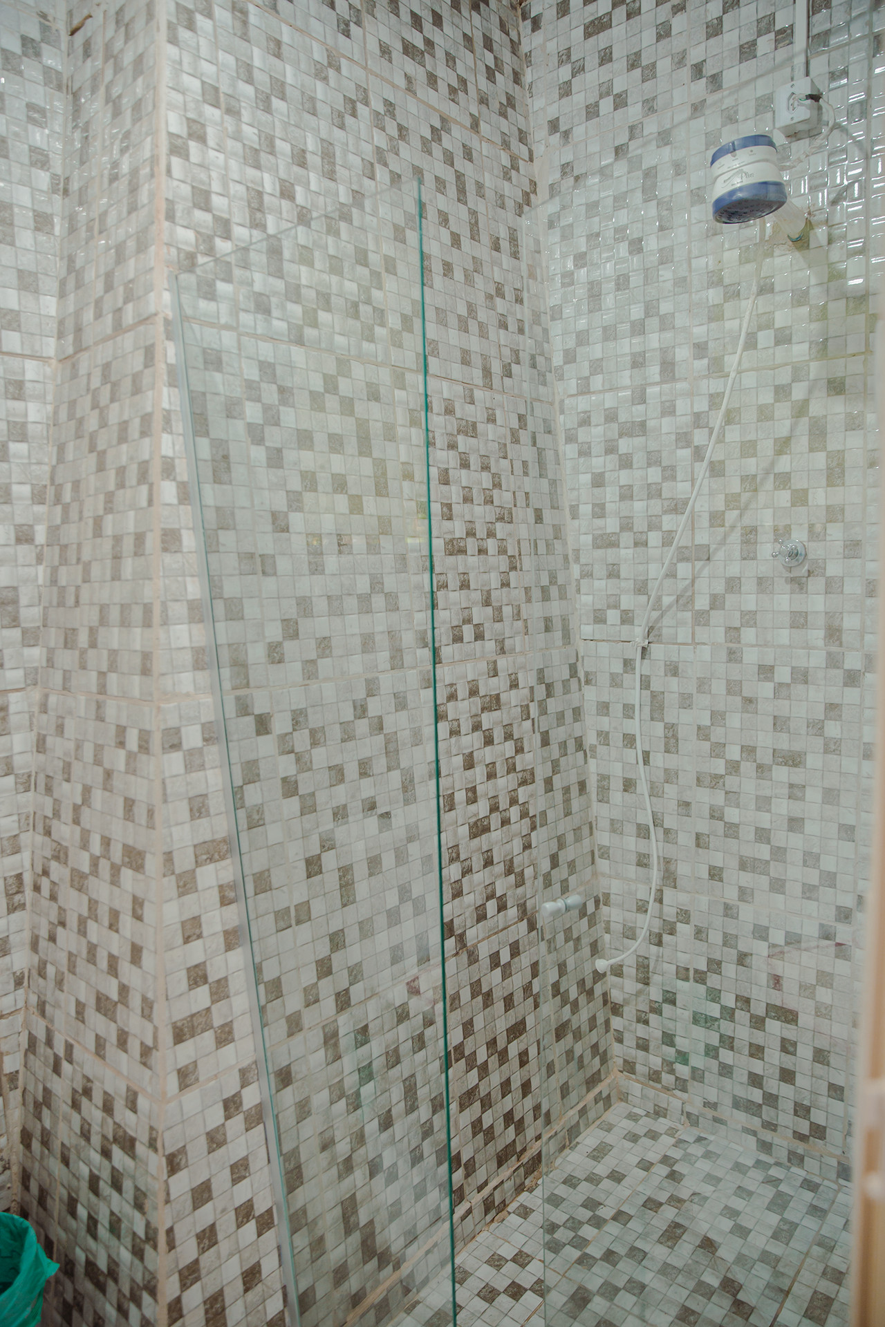 - Os banheiros possuem chuveiro elétrico e box de vidro/acrílico