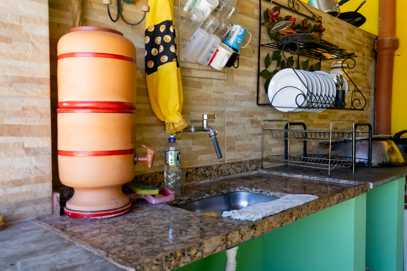 In the gas independent kitchen, refrigerator, microwave, oven, freezer, dishes/cutlery, kitchen utensils, frying pan, juicer and hob are provided.