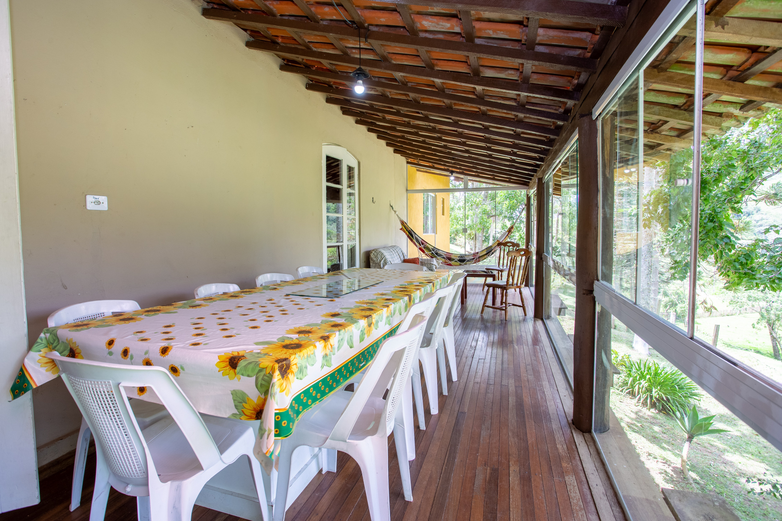 The house in Ibiúna has 4 bedrooms and has capacity for 16 people.