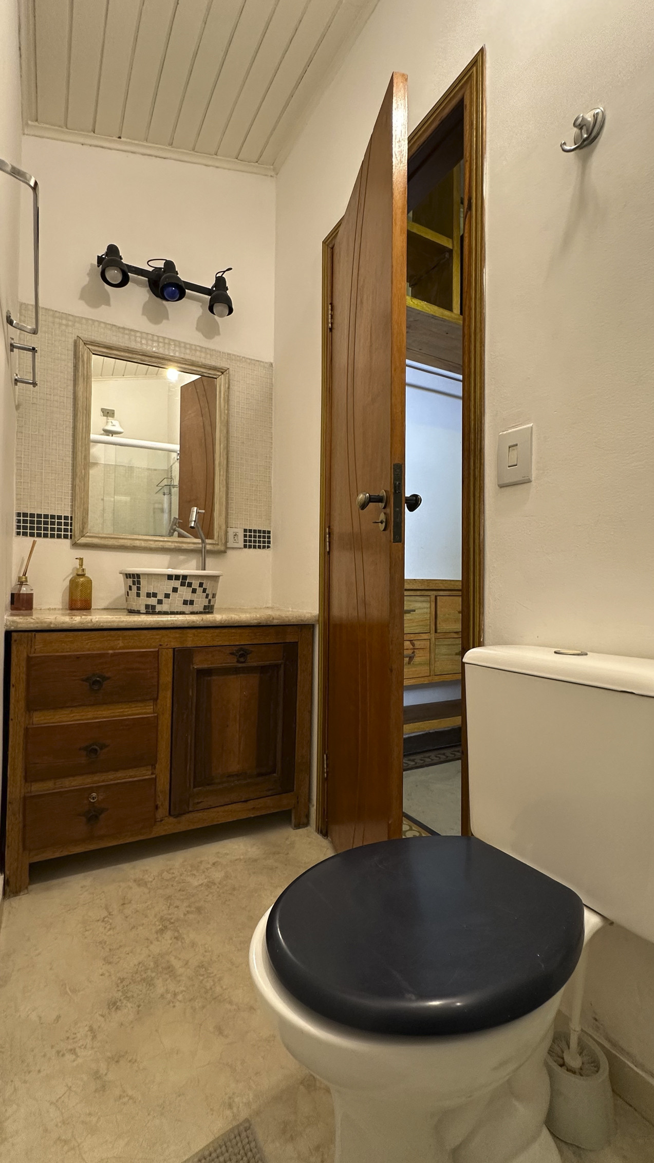 - Bathrooms have electric shower, glass shower enclosure, mirror, and basic hygiene items.