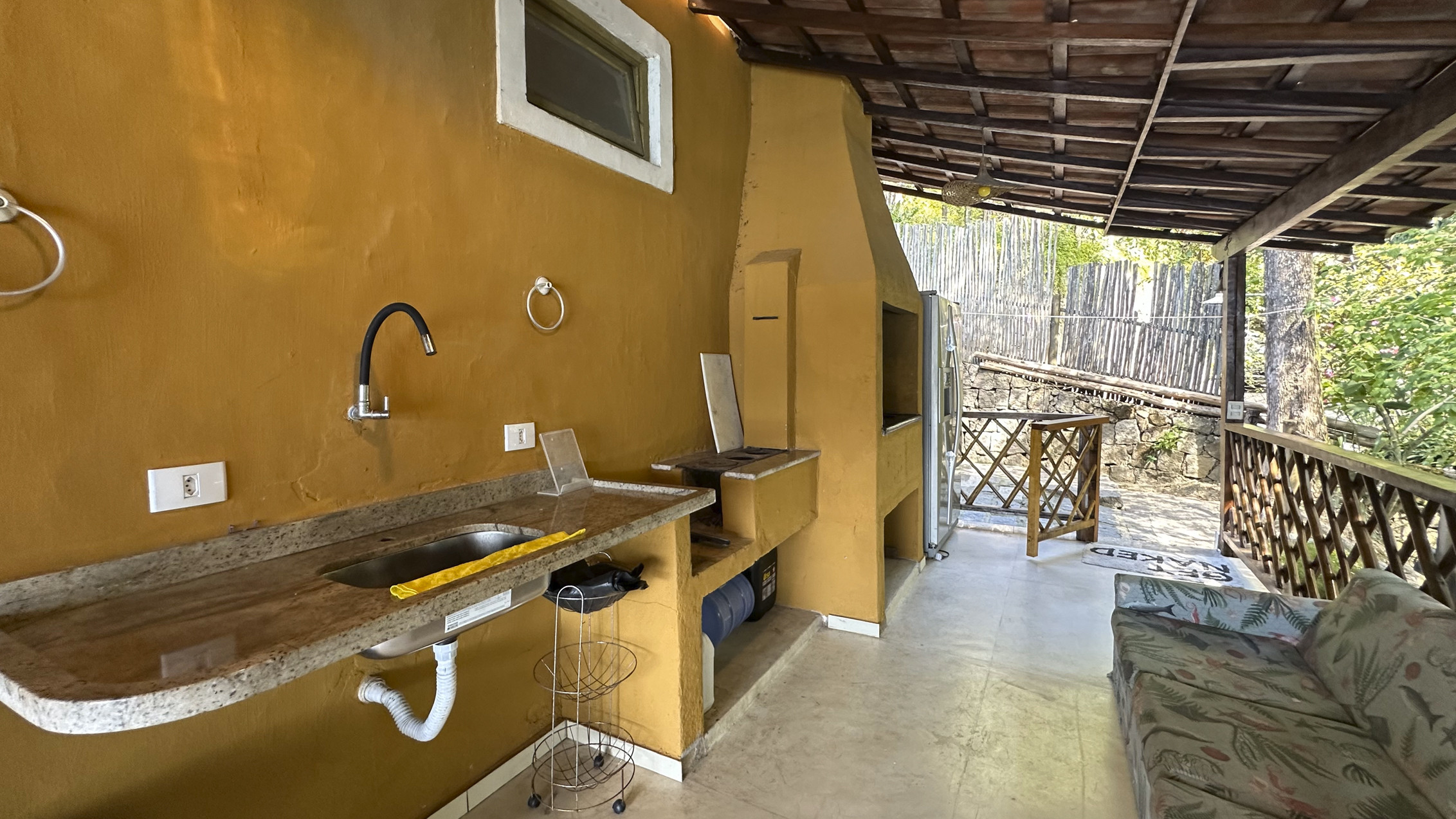 - Gourmet area, with a 6-seat table, external sink, wood-fired stove, barbecue grill