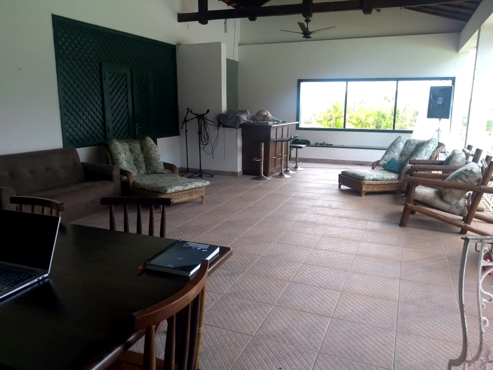 - A sala conta com sofá, poltronas, som, TV a cabo e ventilador de teto