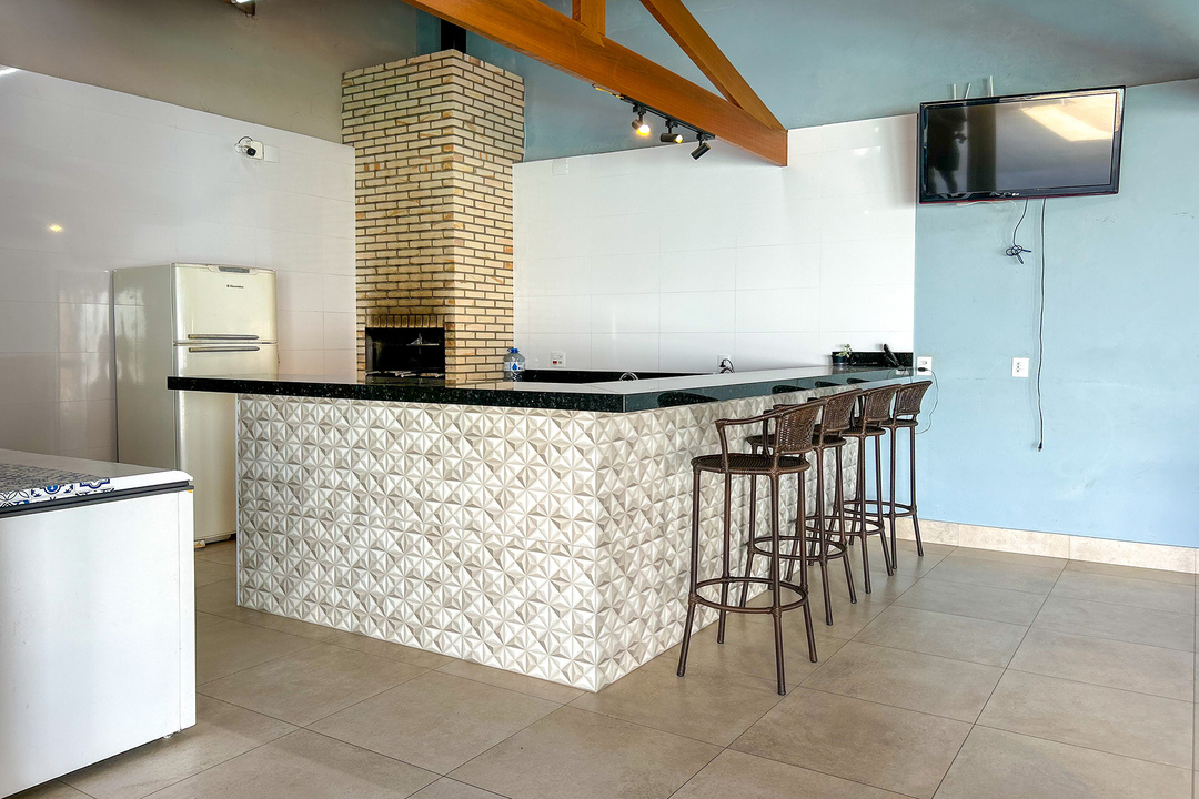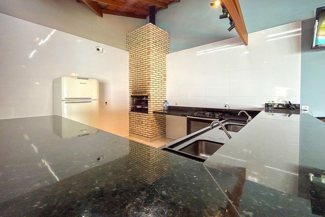 - A cozinha é equipada com todos os utensílios necessários para preparar suas refeições, incluindo freezer, fogão, forno, micro-ondas, balcão e mesa