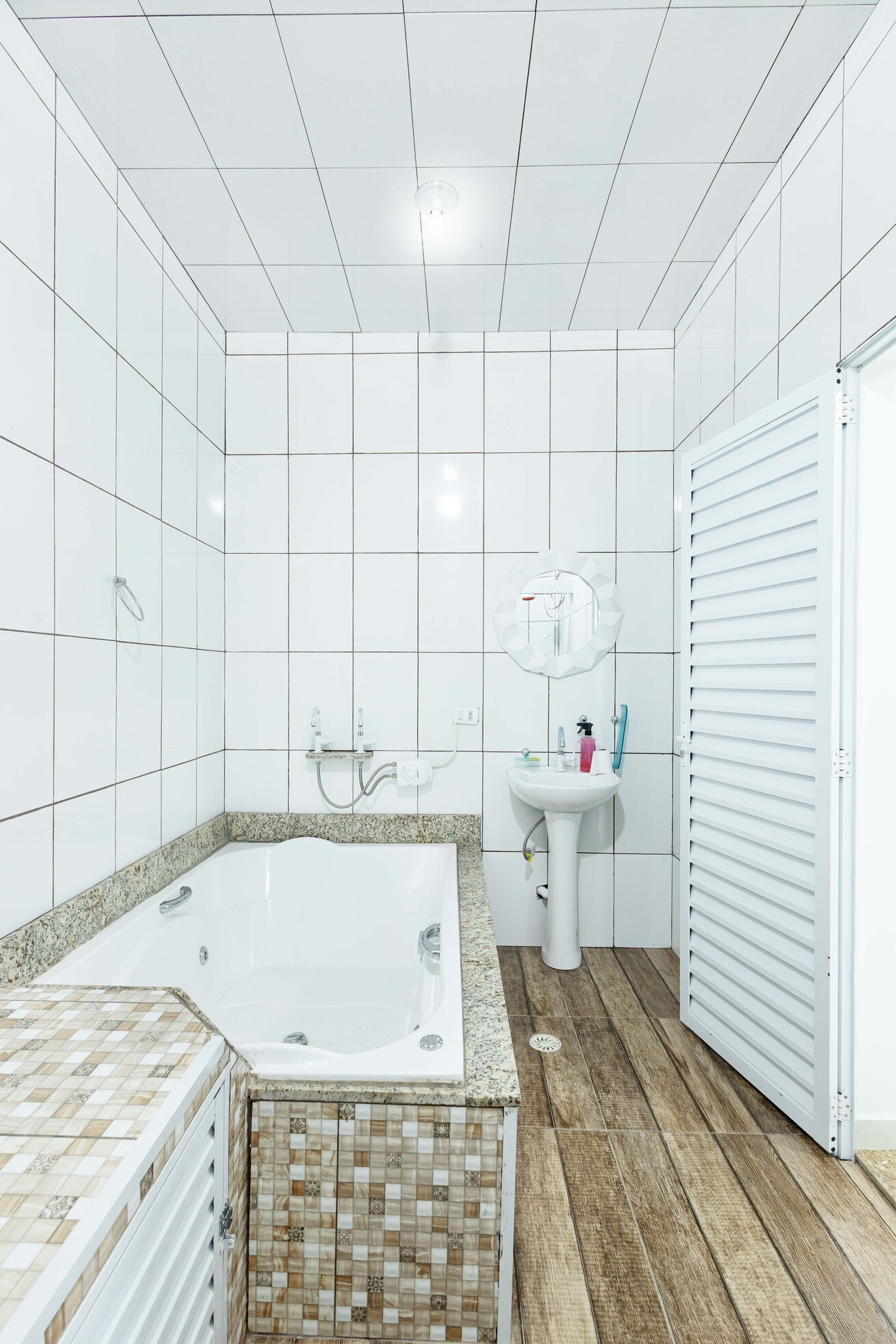 - Suite 2: 1 double bed, wardrobe and private bathroom with bathtub.