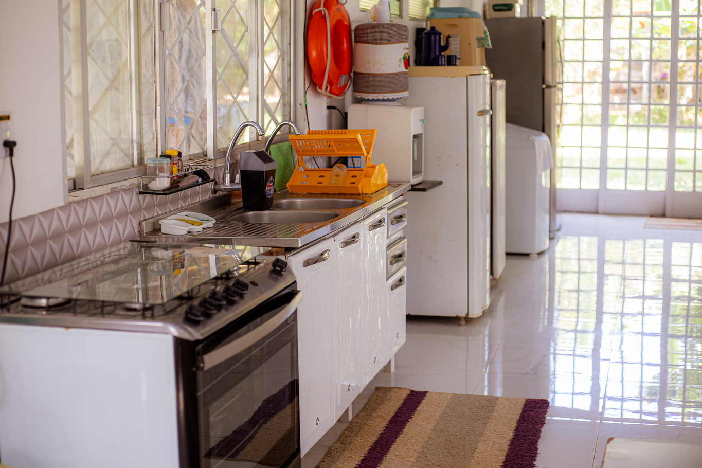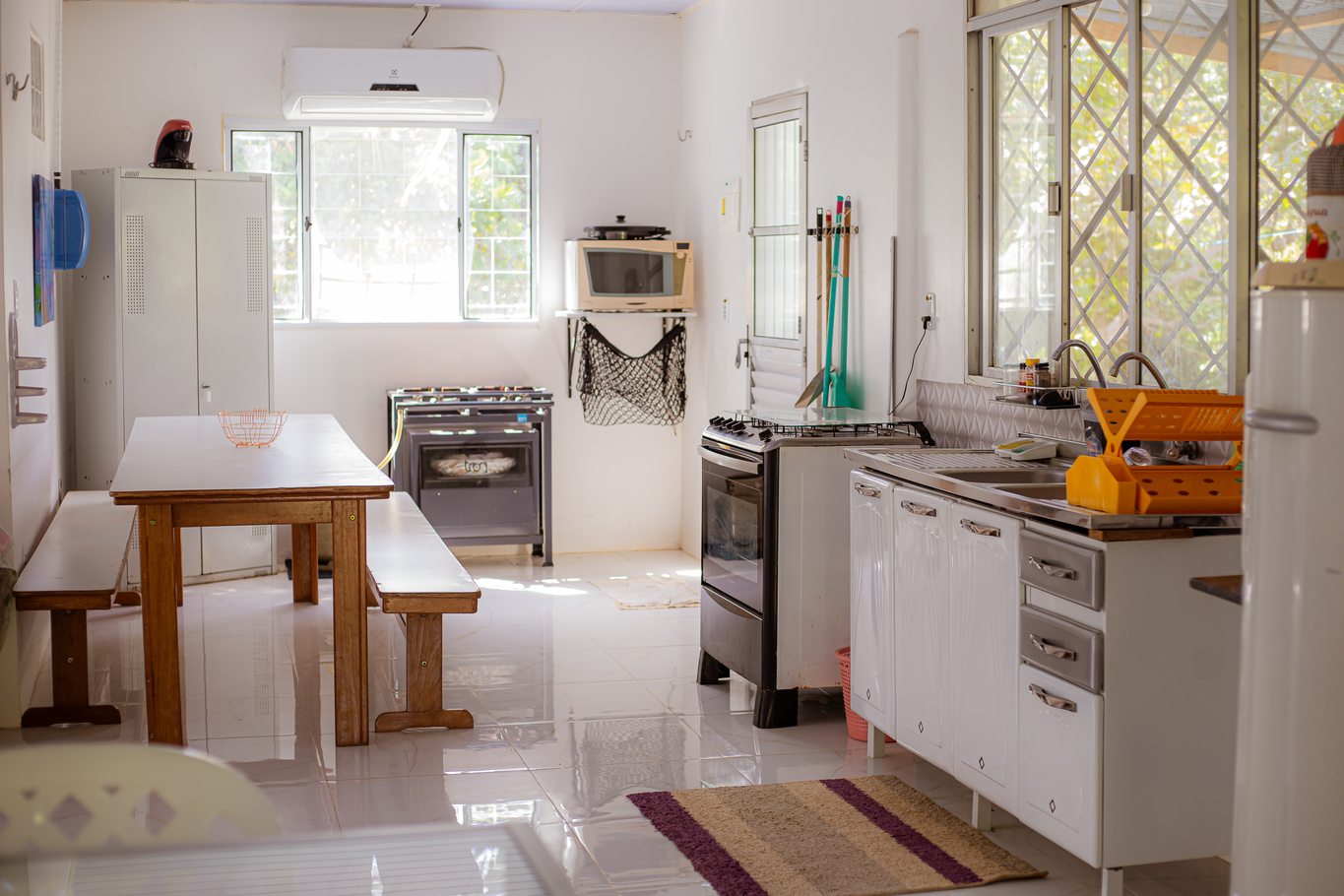 - The kitchen is equipped with various utensils, including coffee maker, freezer, fryer, stove, oven, refrigerator, blender, and microwave (except salt, pepper, and oil)