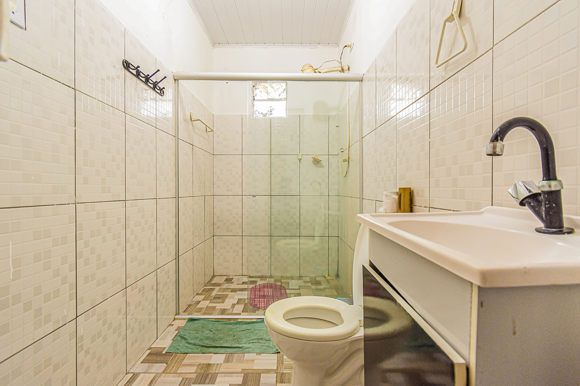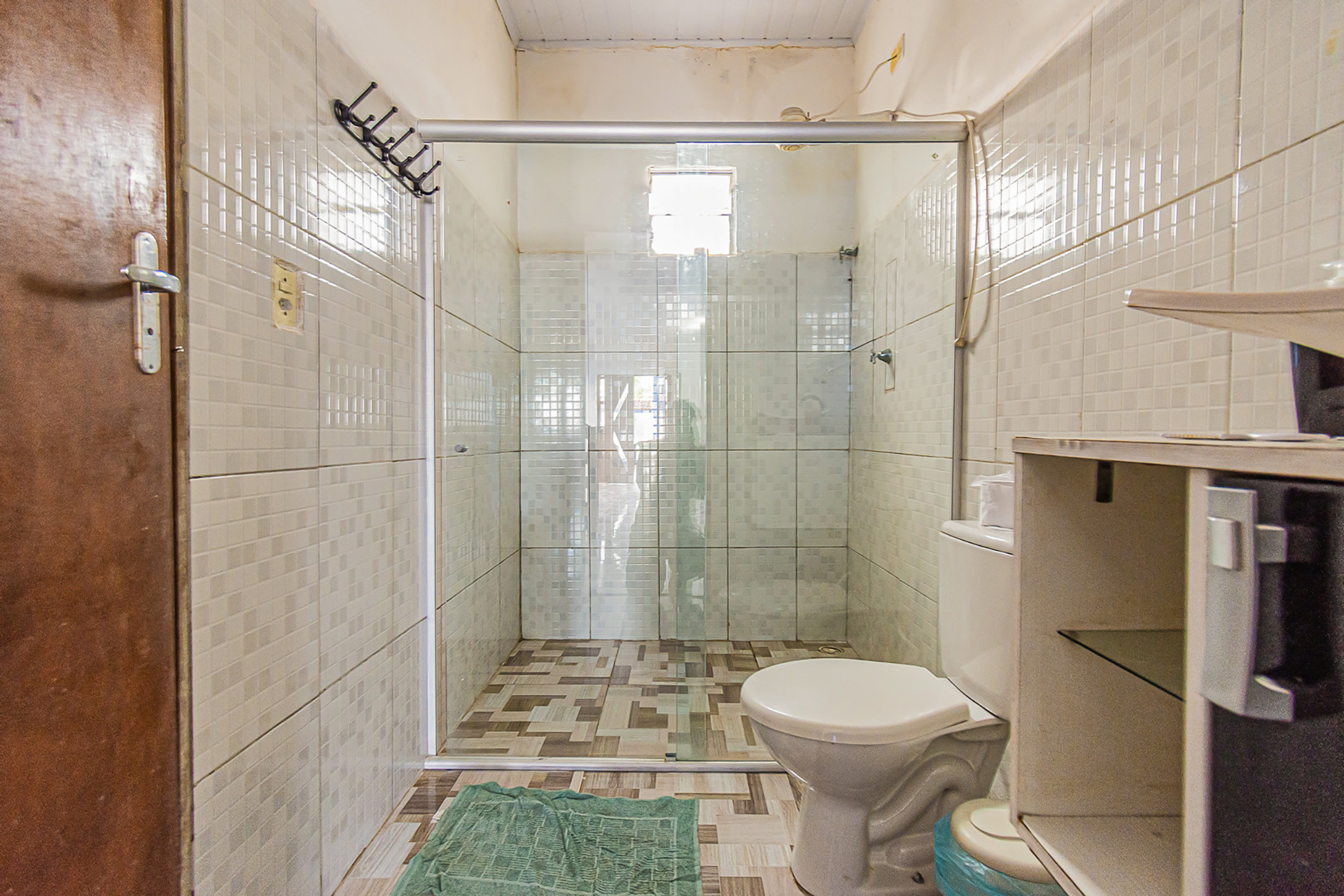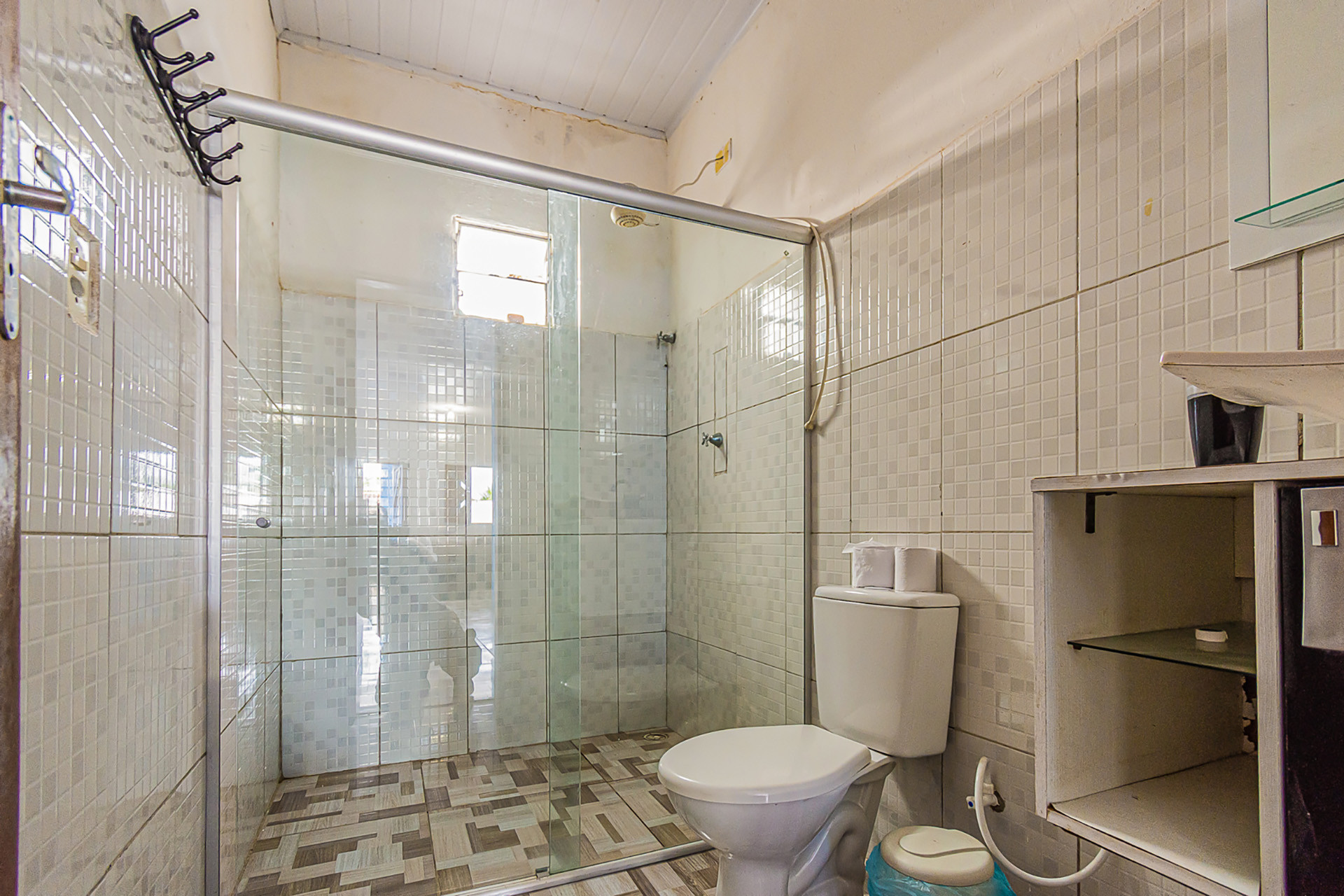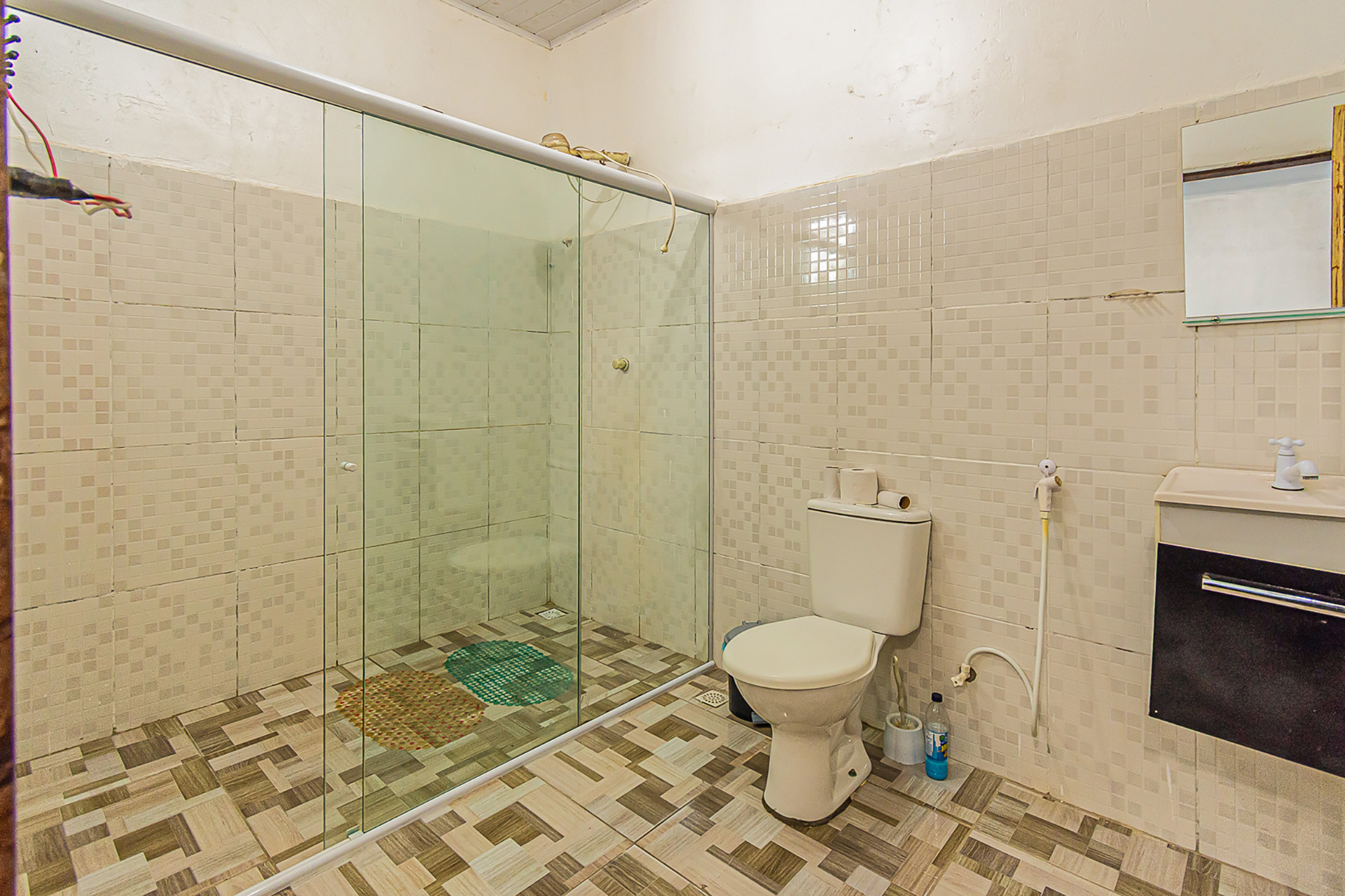 - Os banheiros têm chuveiro elétrico e box de vidro