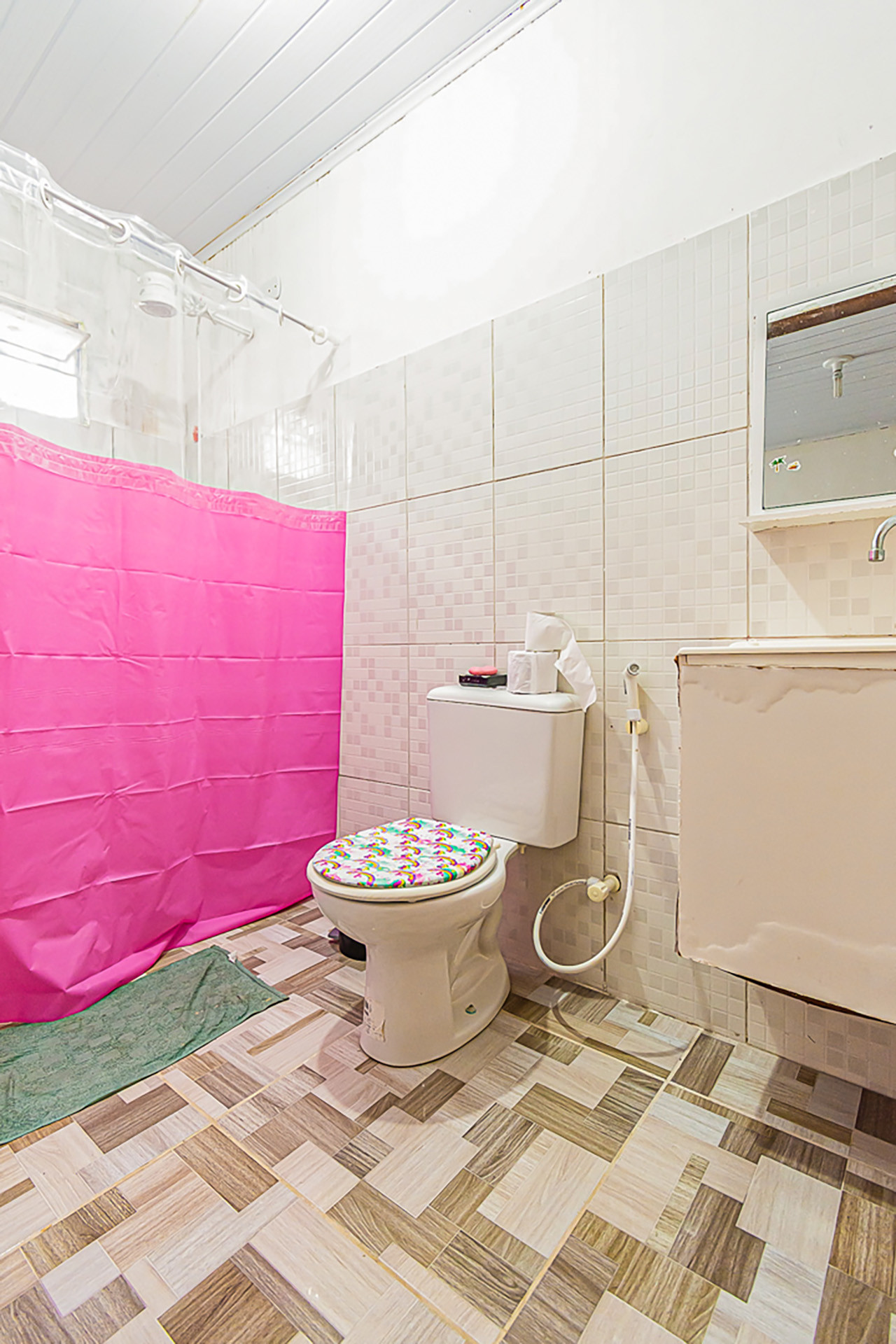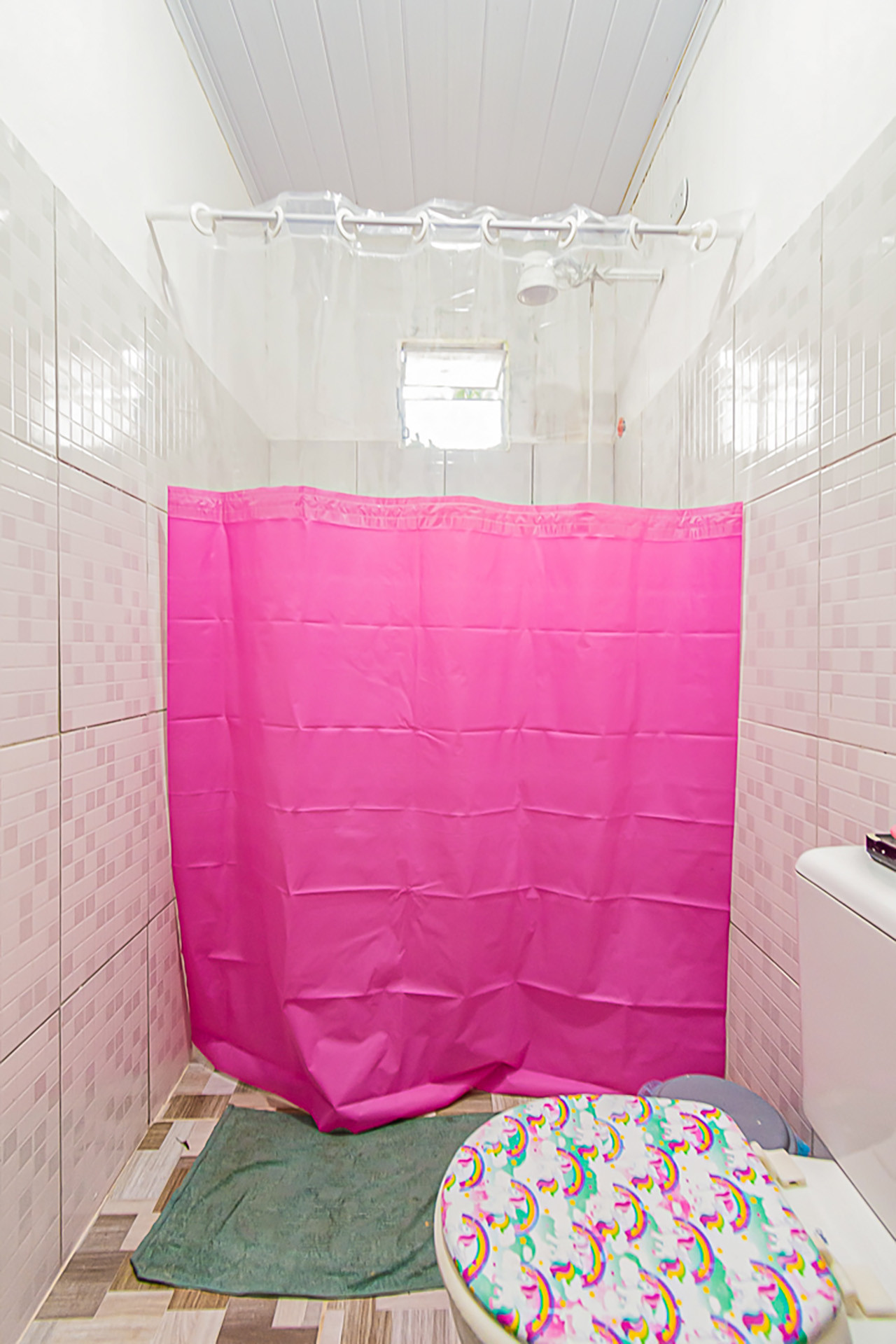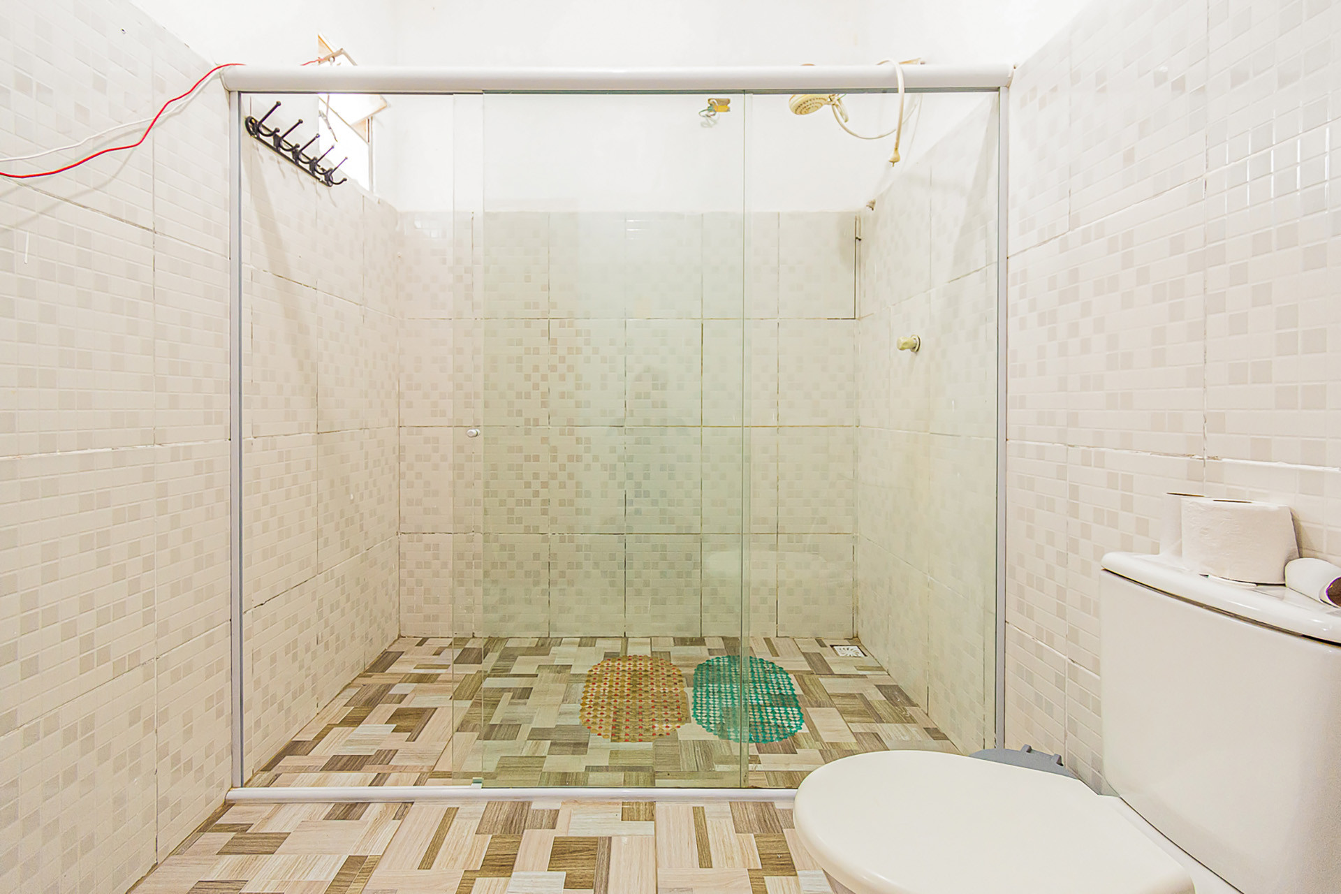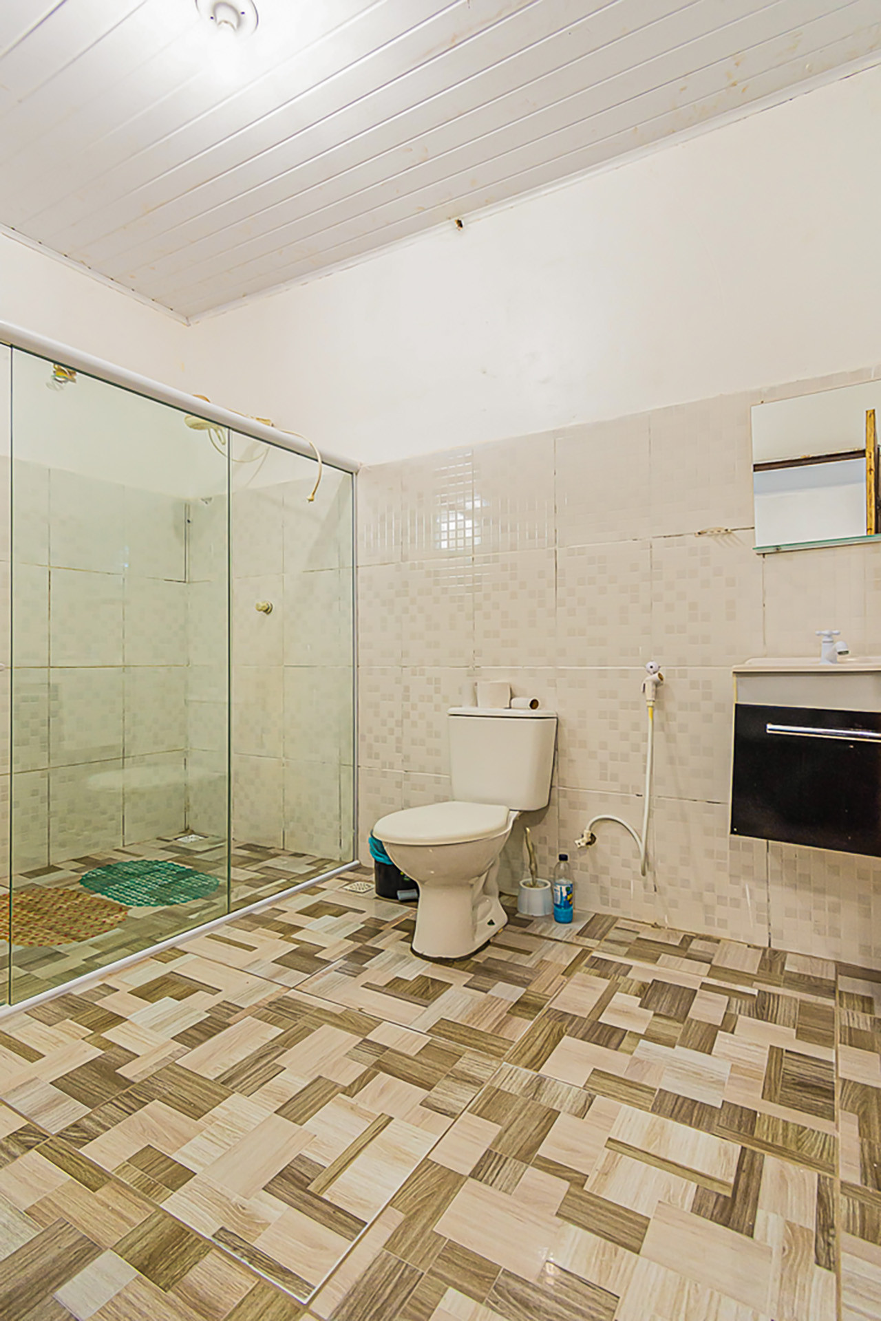 - Os banheiros têm chuveiro elétrico e box de vidro