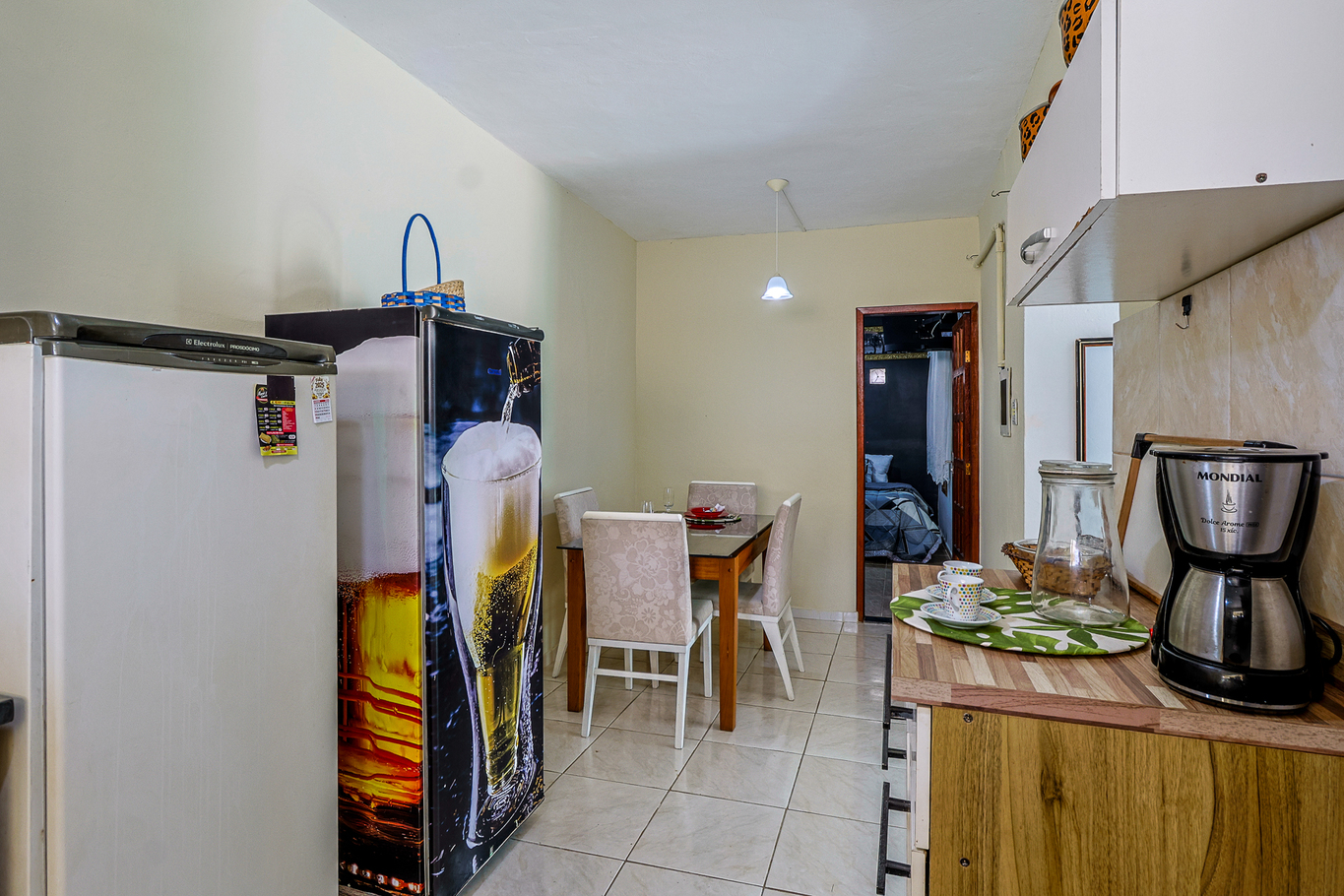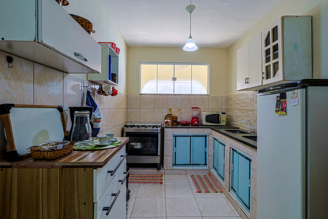 - The kitchen is equipped with dining table, coffee corner and various utensils, including freezer, complete industrial cooker, oven, refrigerator, blender, microwave and food processor (except salt, pepper and oil)