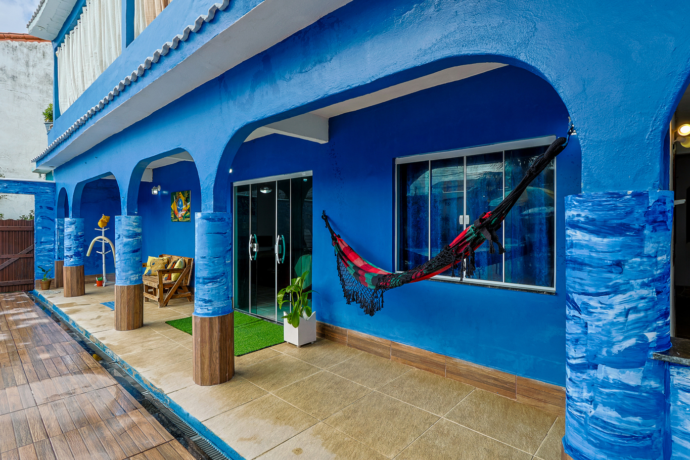 Just a few steps from the beach and with a private swimming pool, this house was designed for leisure moments with those you love. The space offers a spacious living room with a 55" TV, gourmet area with barbecue and wood-burning stove, well-equipped kitchen and comfortable bedrooms with bed linens. To relax, the veranda has a hammock and sun loungers. Equipped with Wi-Fi, utensils and everything you need for peaceful days in Maricá.