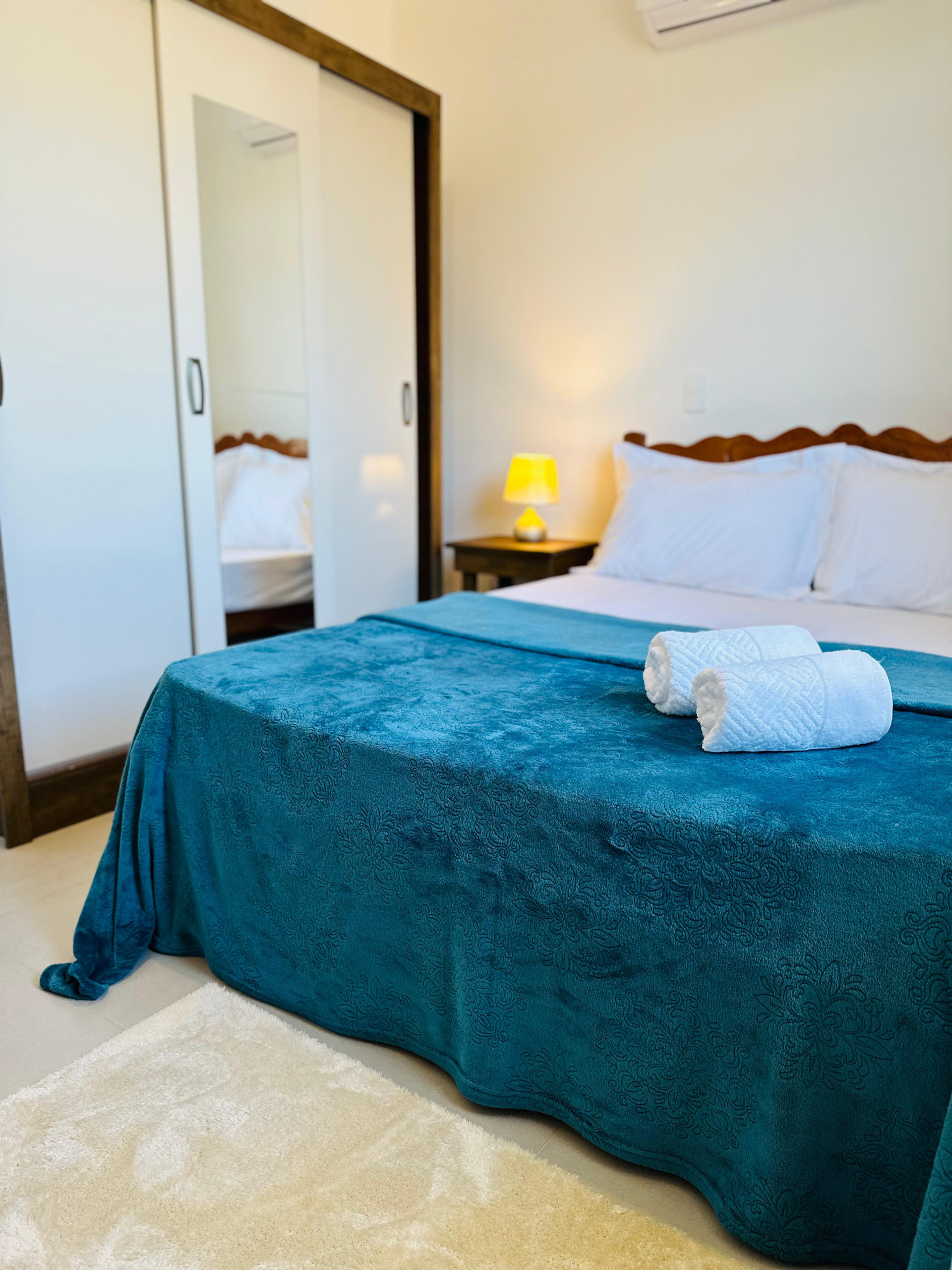 - Na hora de descansar, nos quartos você encontra armário, edredom / cobertor e uma confortável cama de casal (cada)