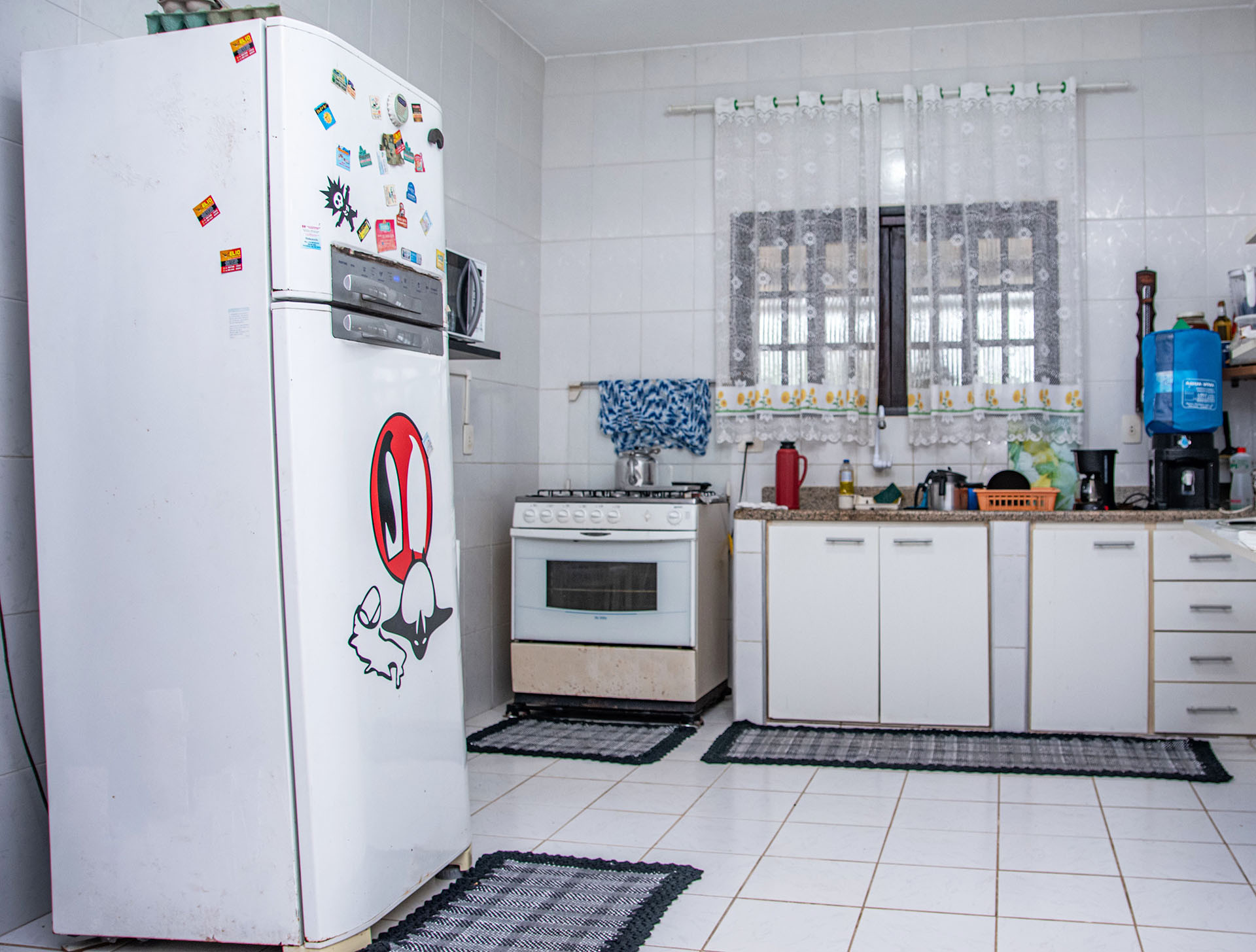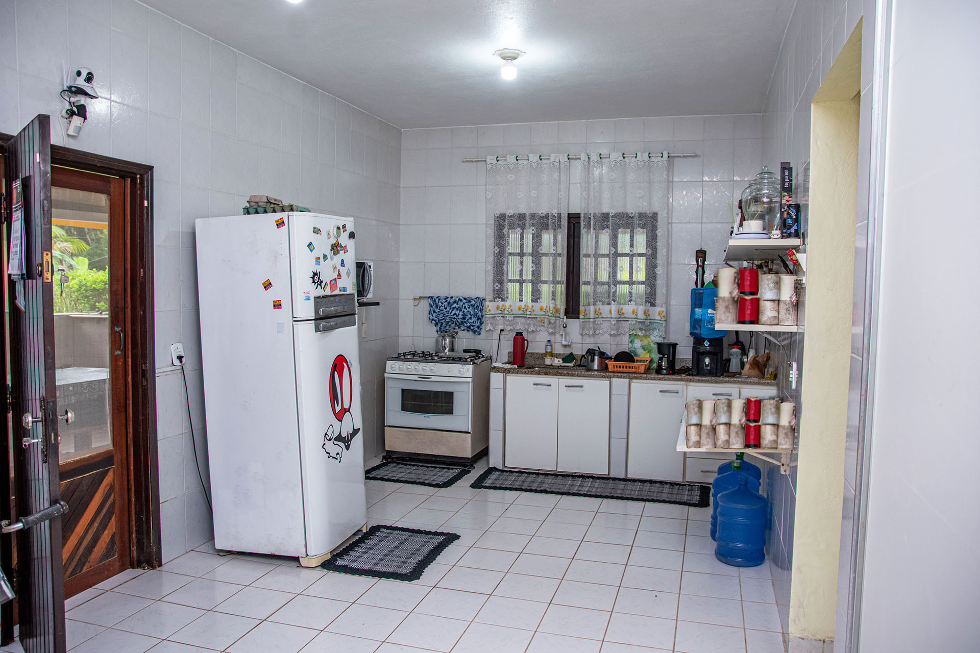 - A cozinha é equipada com todos os utensílios necessários para suas refeições, incluindo freezer, fritadeira, fogão, forno, geladeira, liquidificador e micro-ondas
