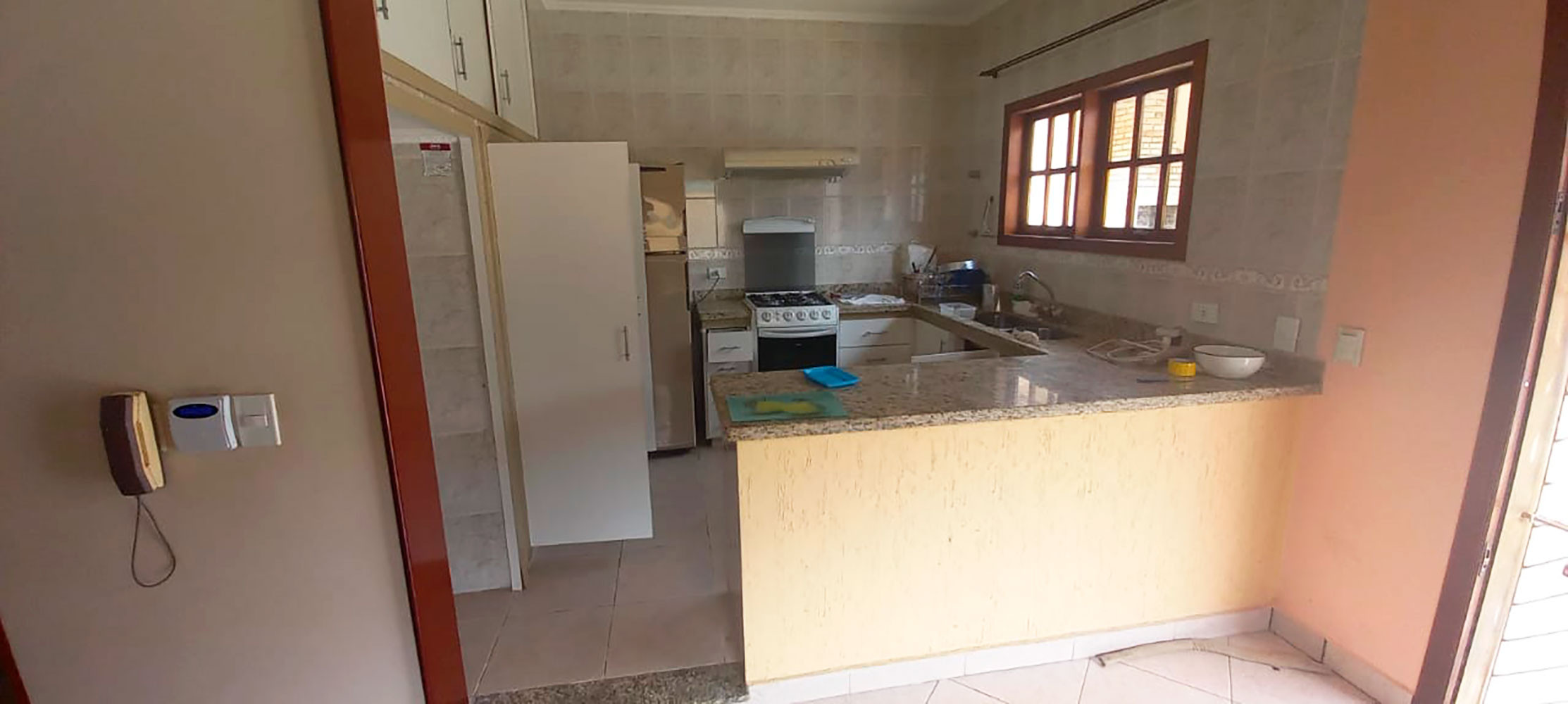 - A cozinha está equipada com fogão, exaustor, geladeira, micro-ondas, liquidificador, cafeteira, fritadeira, panelas, louças e utensílios variados, além de esponja de lavar louça e detergente