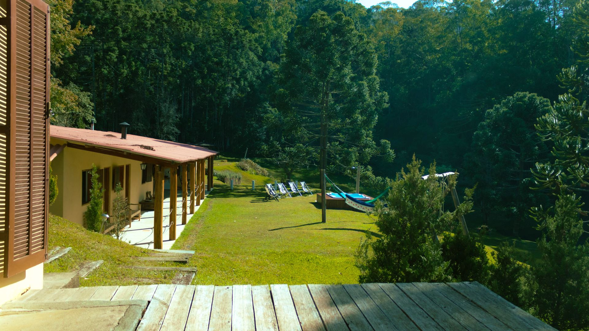 - Na suíte 1 há 1 cama de solteiro e 1 cama king size (chalé 1)