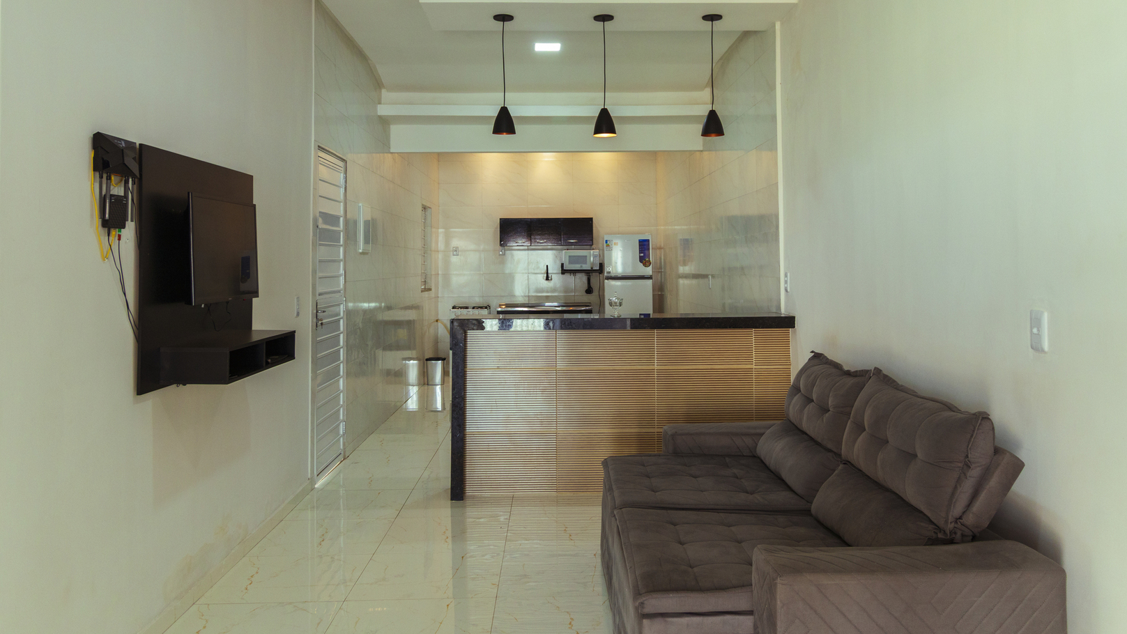 - Living room with sofa and Smart TV