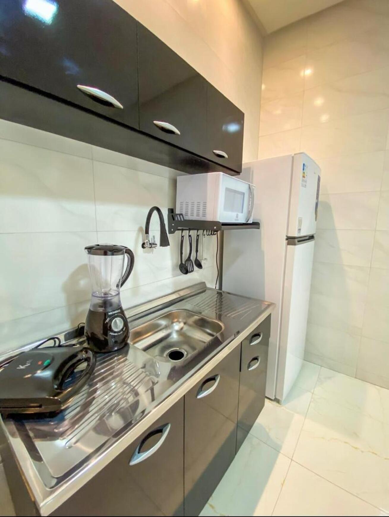 - Complete kitchen with stove, oven, refrigerator, microwave, blender, toaster, kettle, dining table and utensils (except oil and salt)