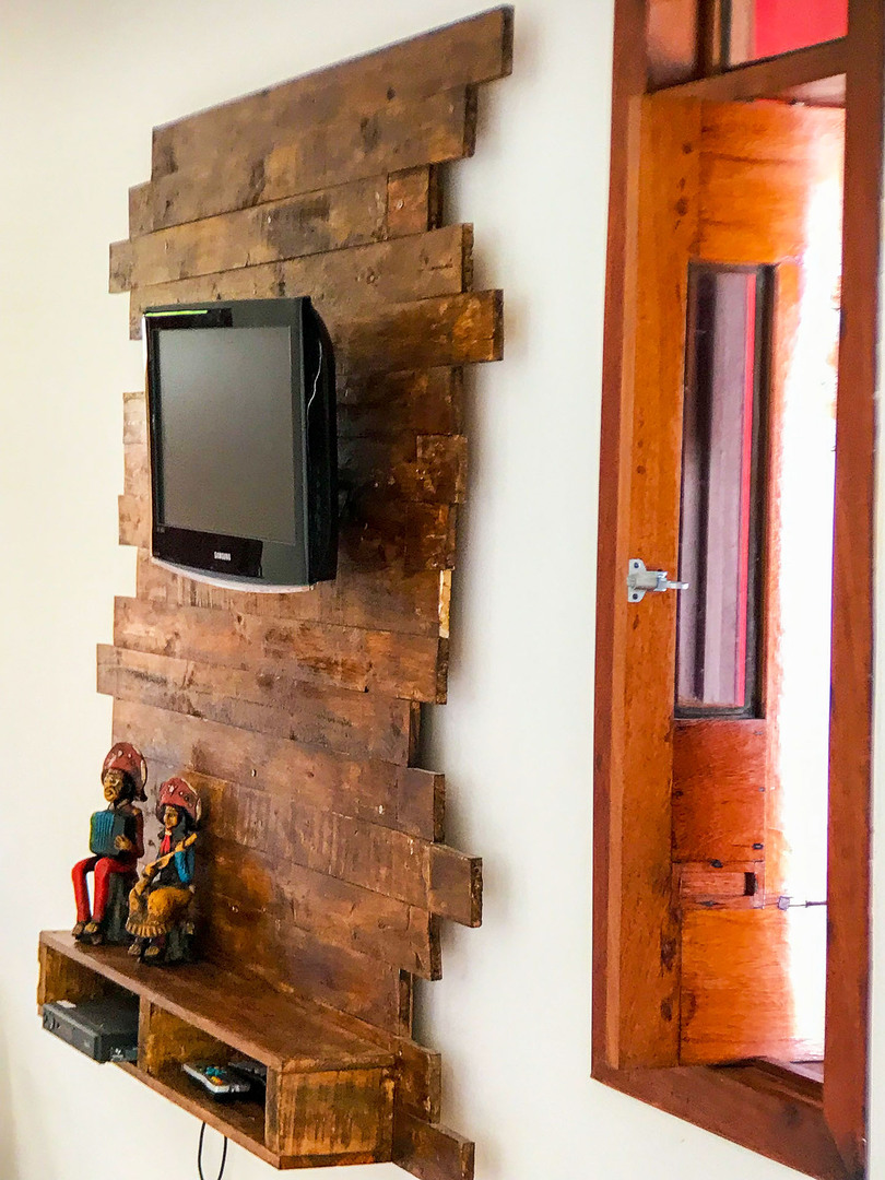 - A suíte está equipada com uma cama de casal e banheiro com chuveiro elétrico
