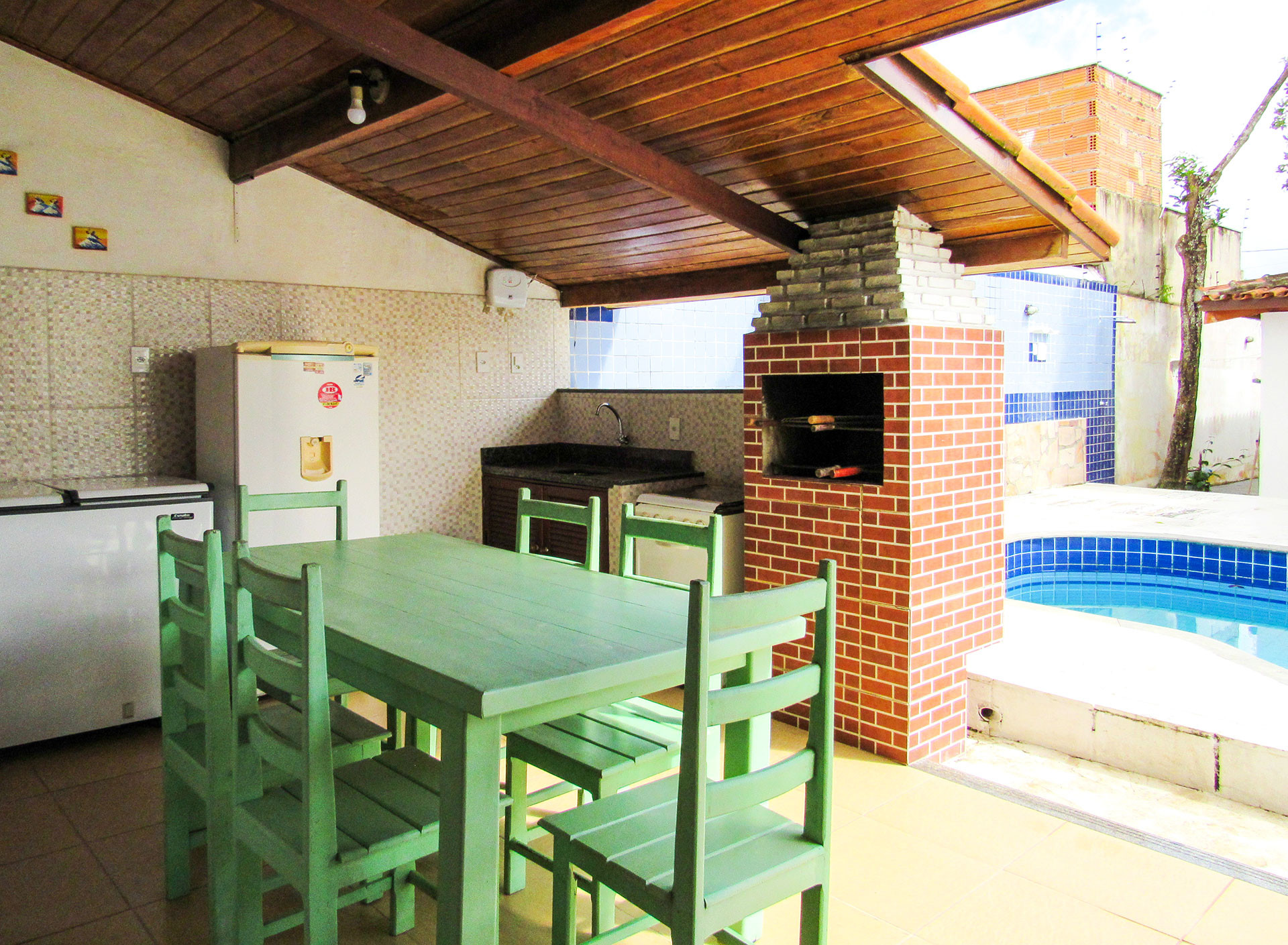 The house in Porto Seguro has 5 bedrooms and has capacity for 20 people.