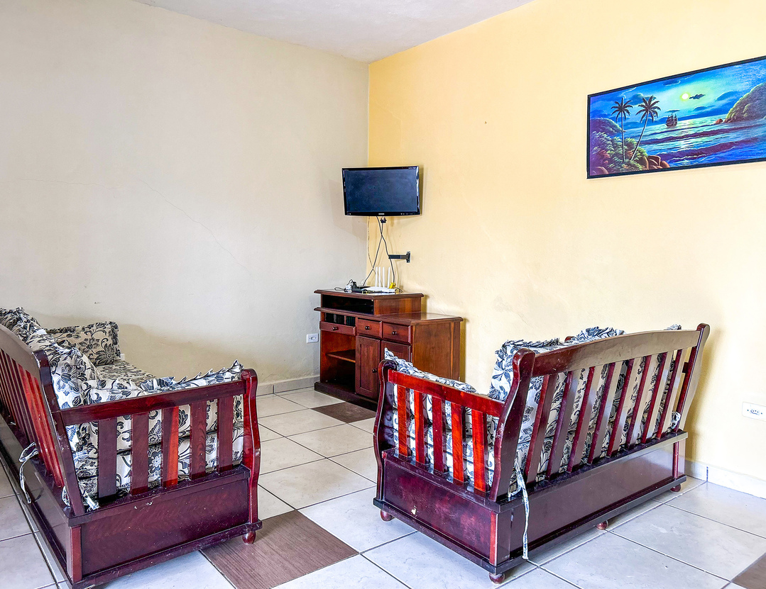 - Na sala de estar você encontra cadeira e sofá