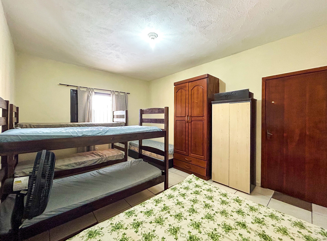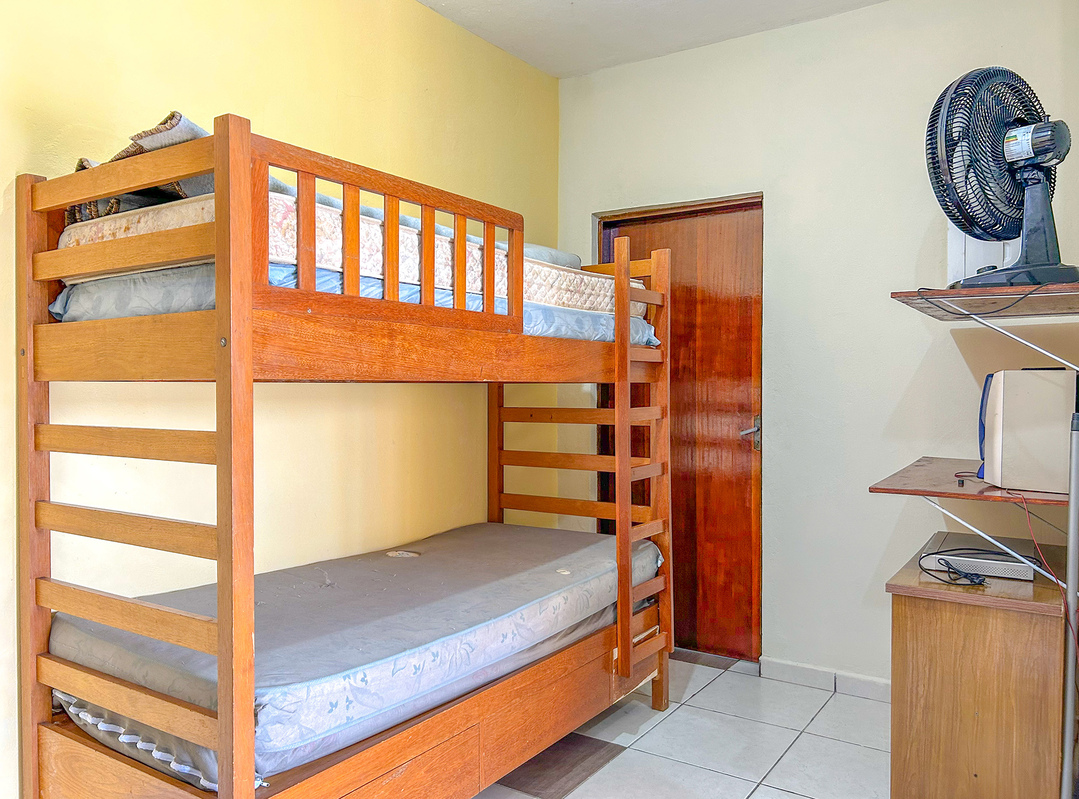 - No quarto há 4 beliches, armário e protetor de colchão