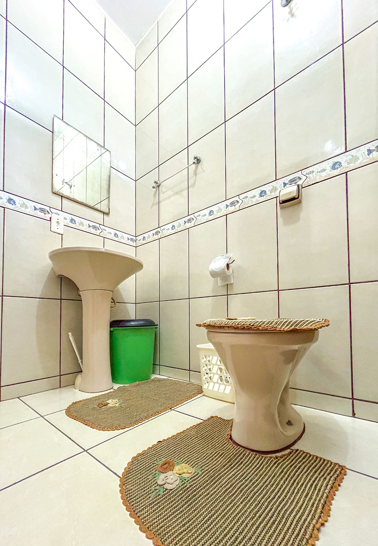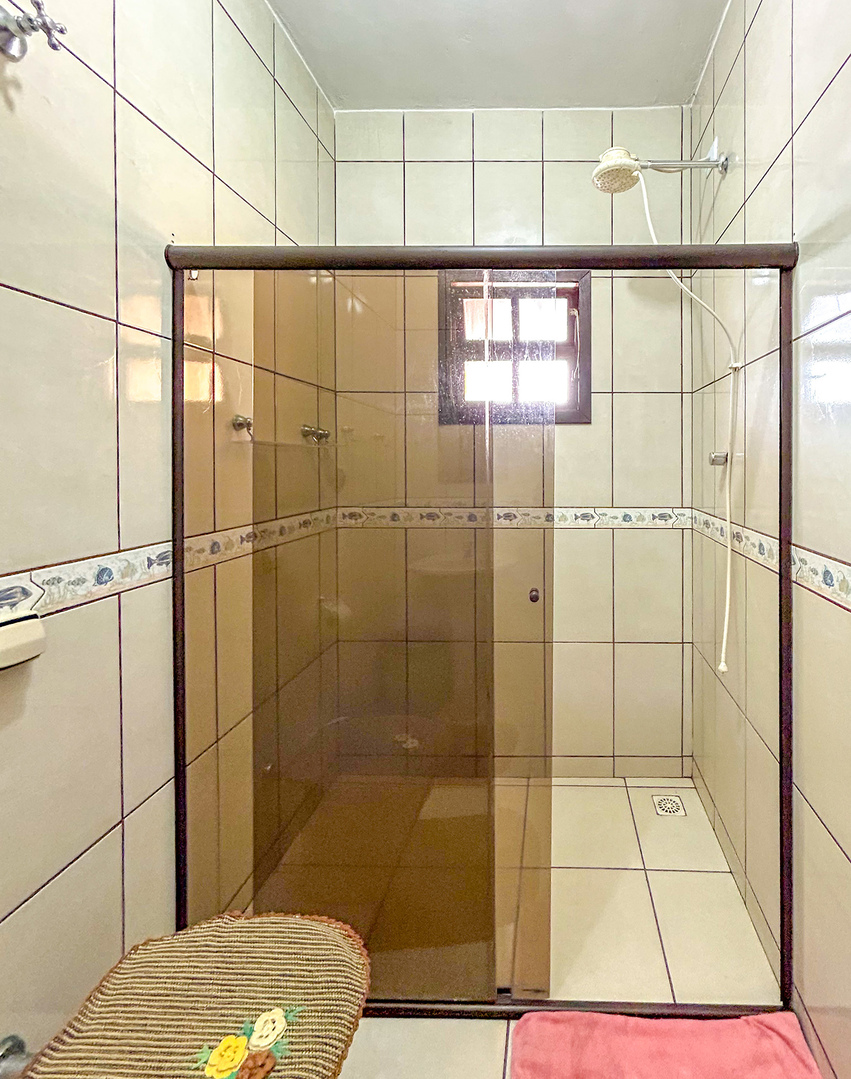 - Os banheiros são equipados com chuveiro elétrico