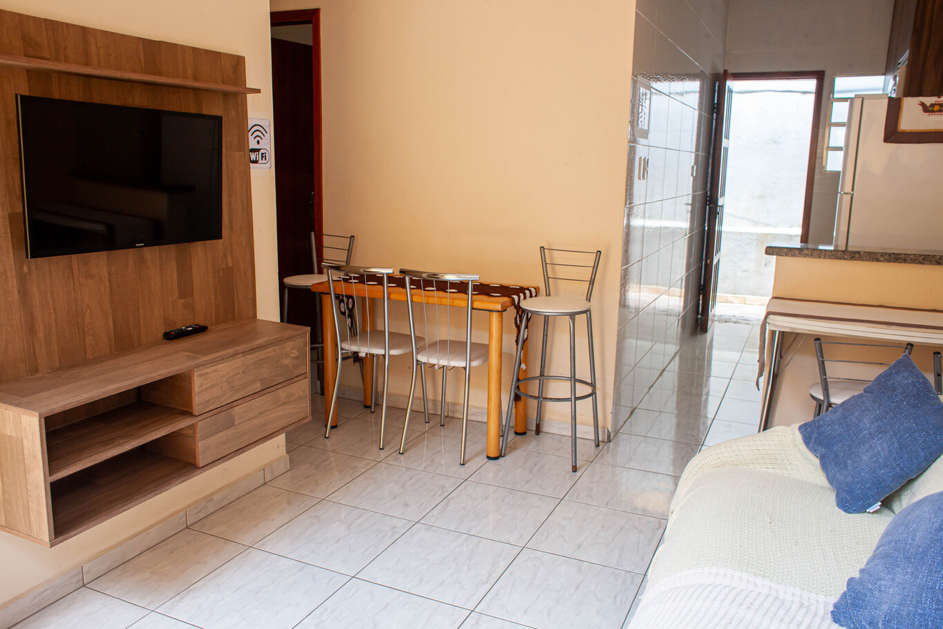 - In the living room you can find a chair, armchair and sofa bed