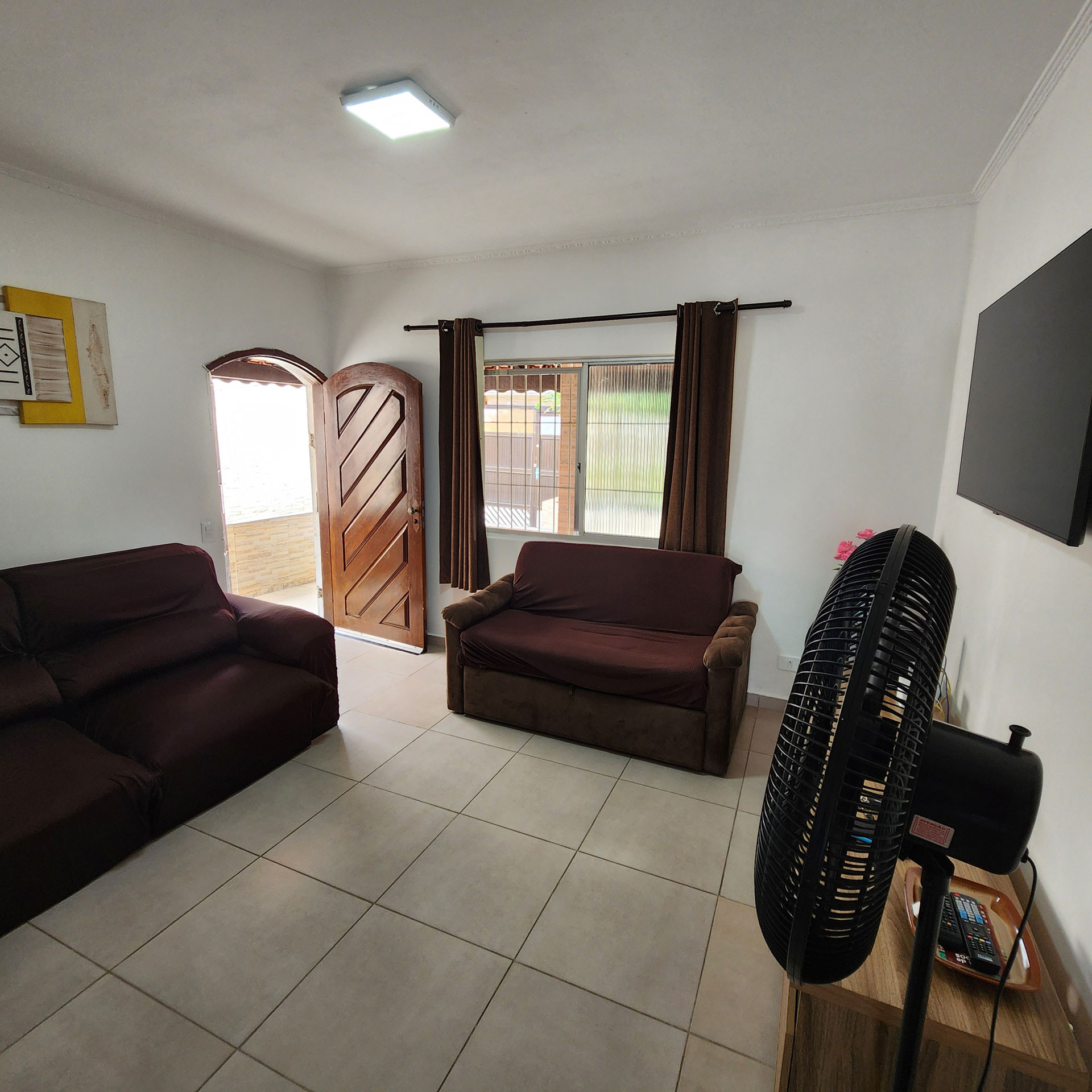 - Sala com sofá-cama, TV a cabo e ventilador de teto