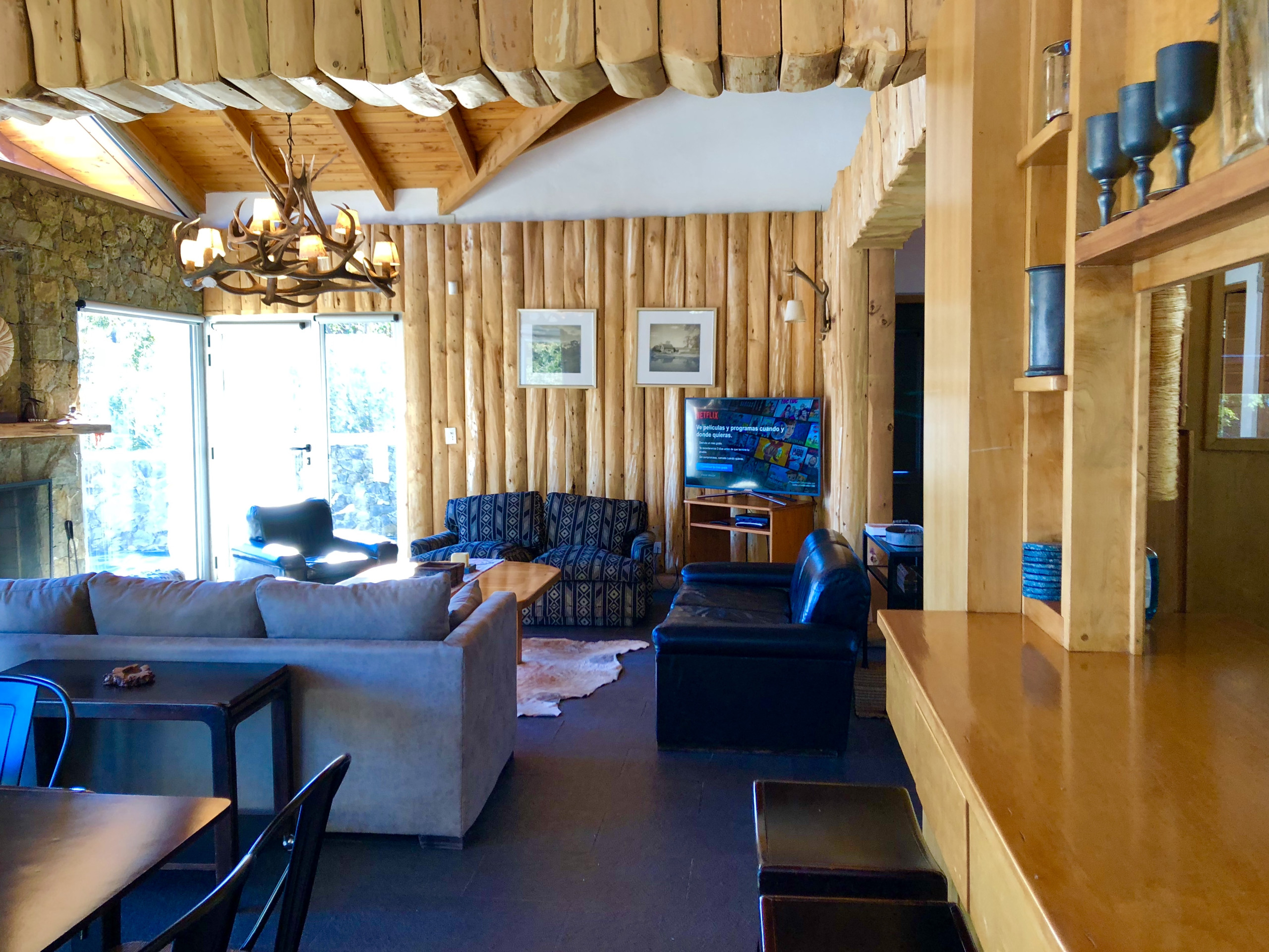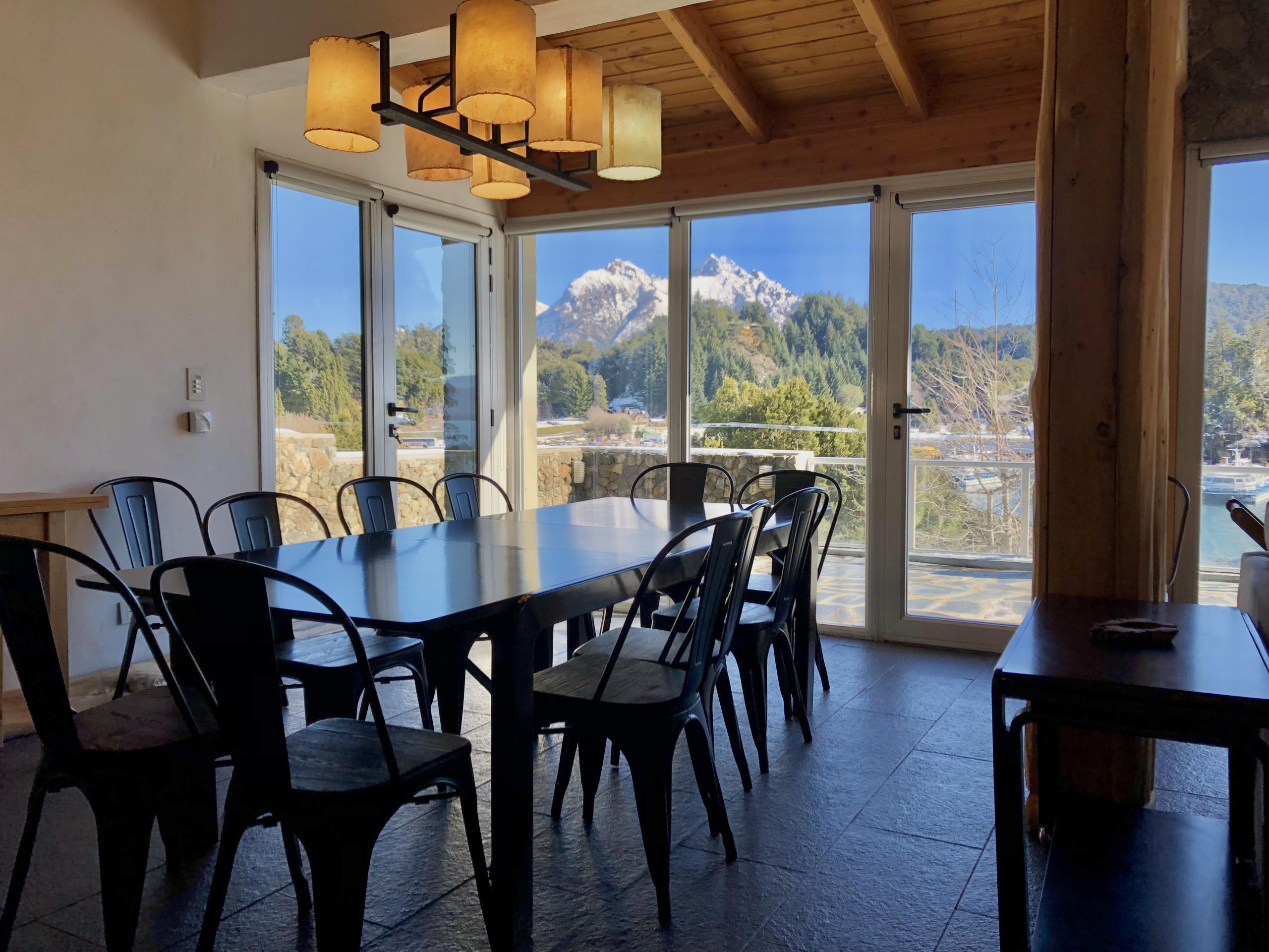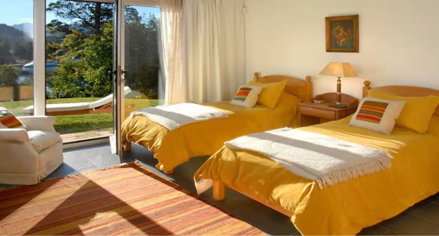 The house is located on the shores of Lake Nahuel Huapi. It is very comfortable, with its own garden and waterfront. It has 5 bedrooms with en-suite bathrooms, plus a sixth bedroom with its own bathroom, which was originally designed as a service room but can be perfectly used as a bedroom. The difference from the others is that it is smaller and does not have the same view.