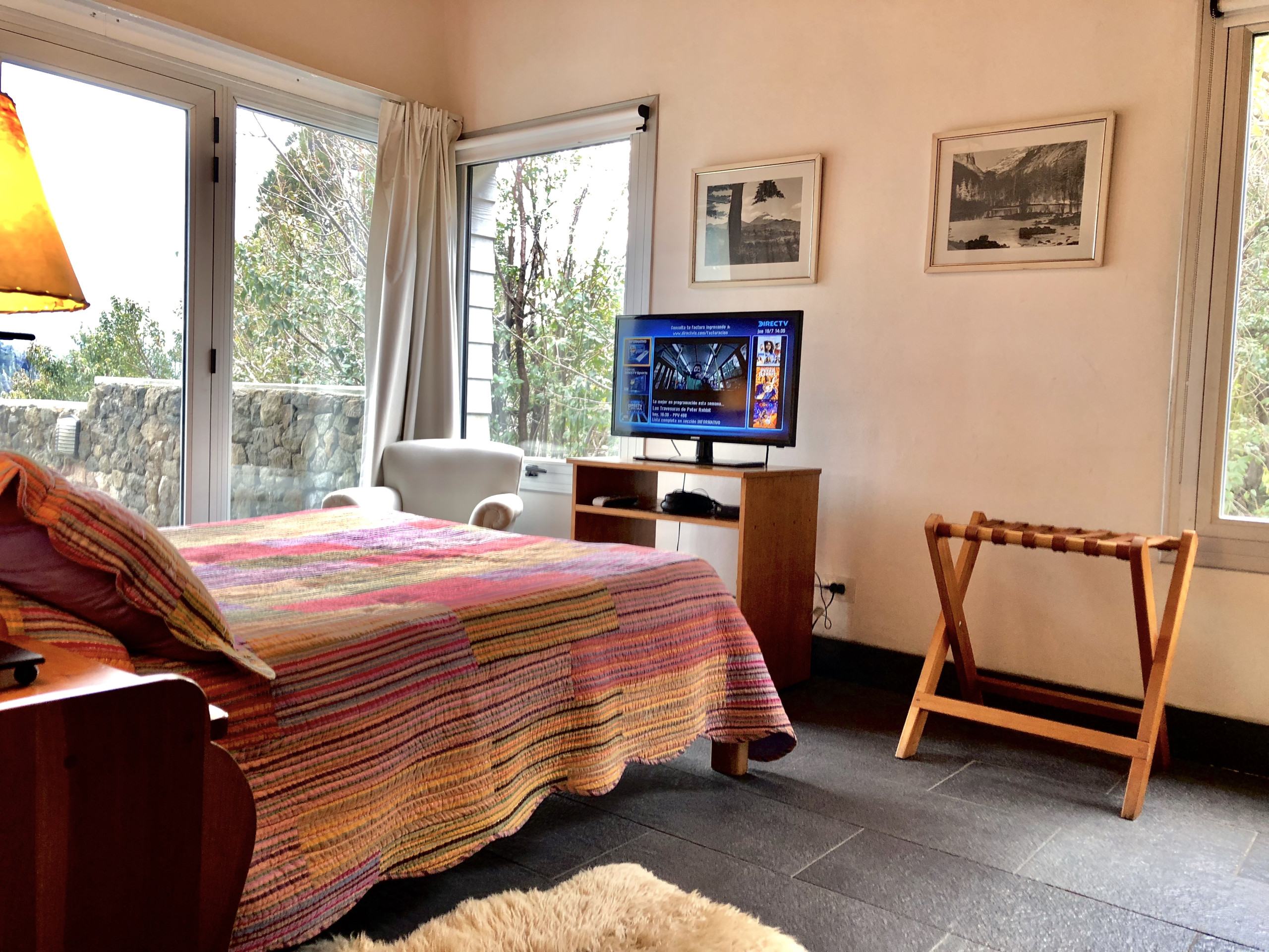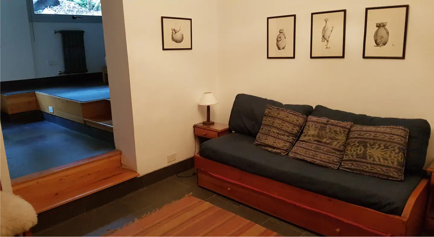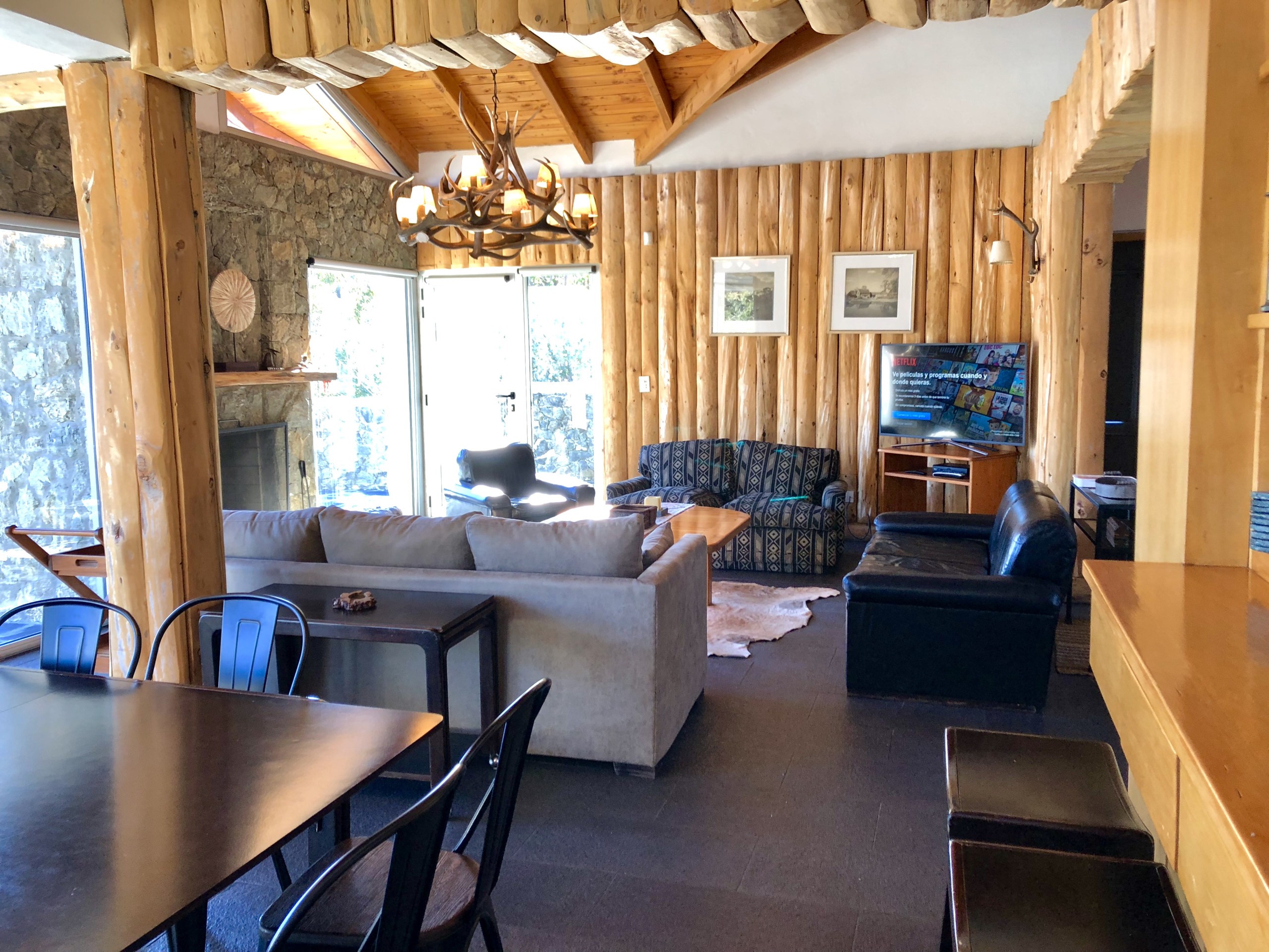 The house is located on the shores of Lake Nahuel Huapi. It is very comfortable, with its own garden and waterfront. It has 5 bedrooms with en-suite bathrooms, plus a sixth bedroom with its own bathroom, which was originally designed as a service room but can be perfectly used as a bedroom. The difference from the others is that it is smaller and does not have the same view.