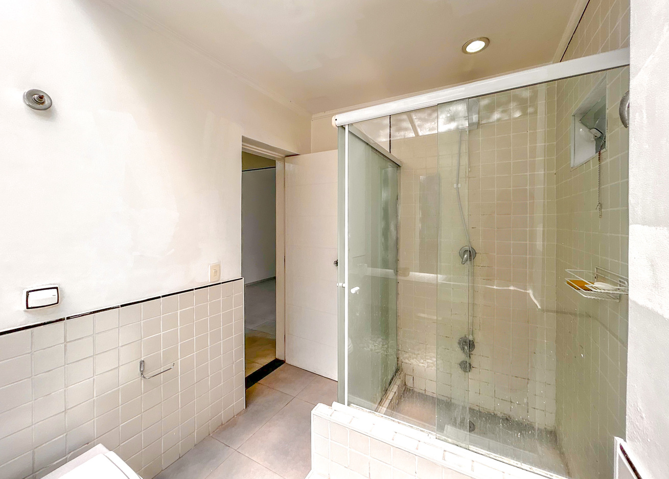 - Support bathroom with electric shower and curtain