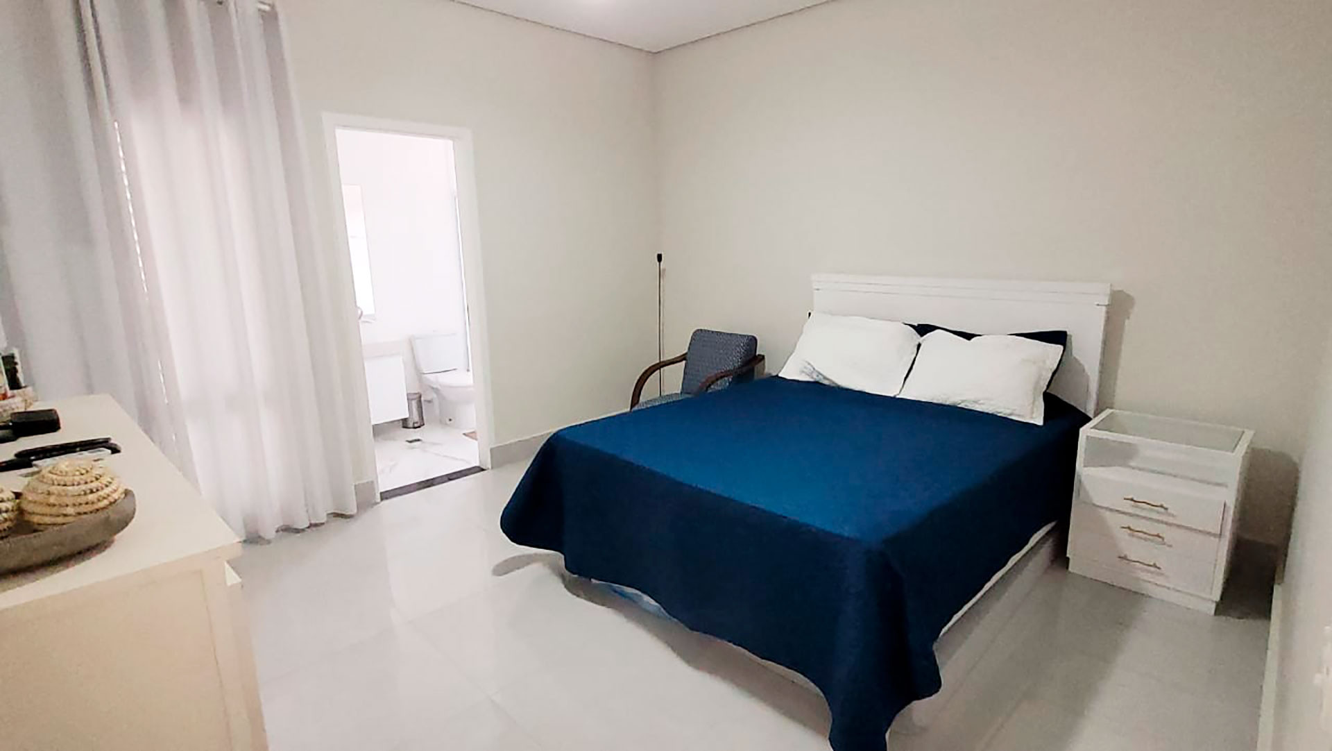 - Na suíte há 1 cama queen size, chuveiro elétrico e box de vidro/acrílico