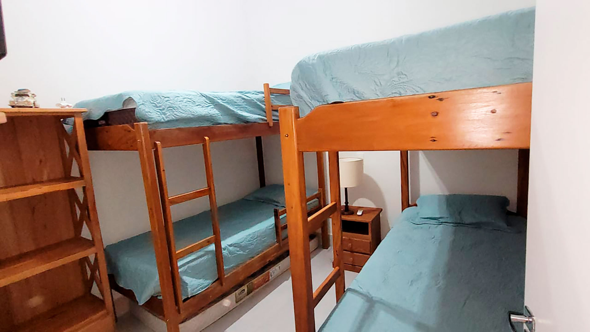 - No quarto 3 há 1 cama de casal e 2 beliches