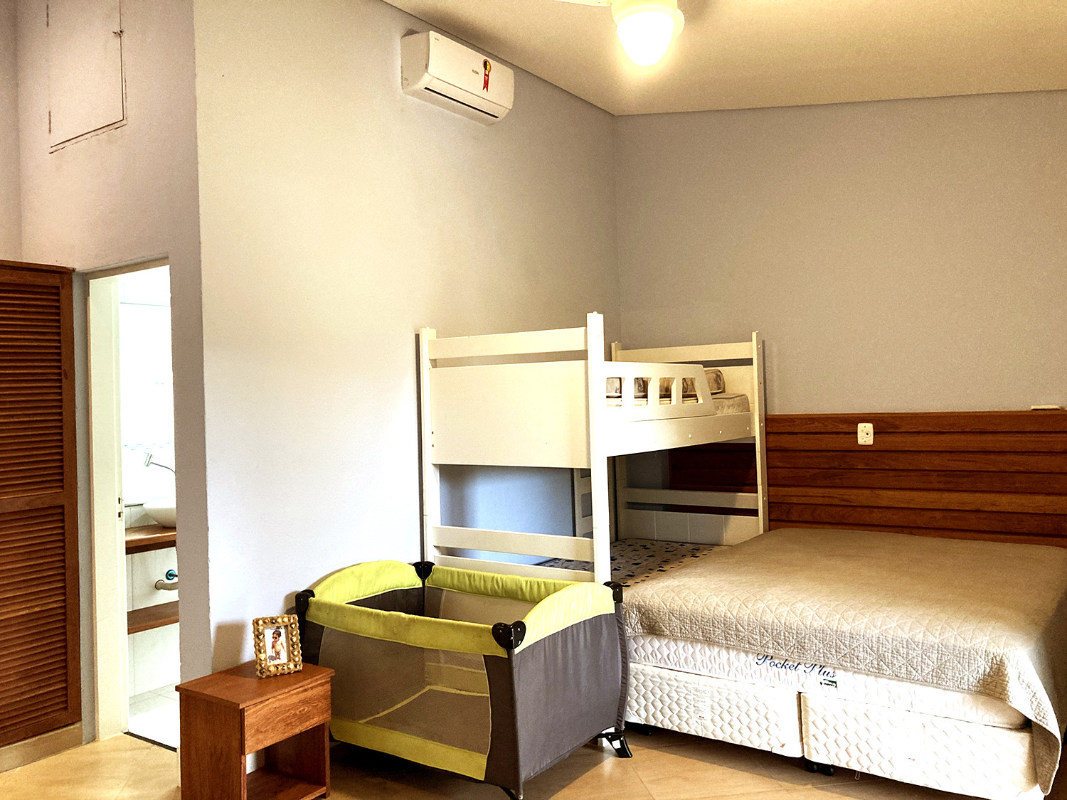 The house in São Sebastião has 7 bedrooms and has capacity for 24 people.