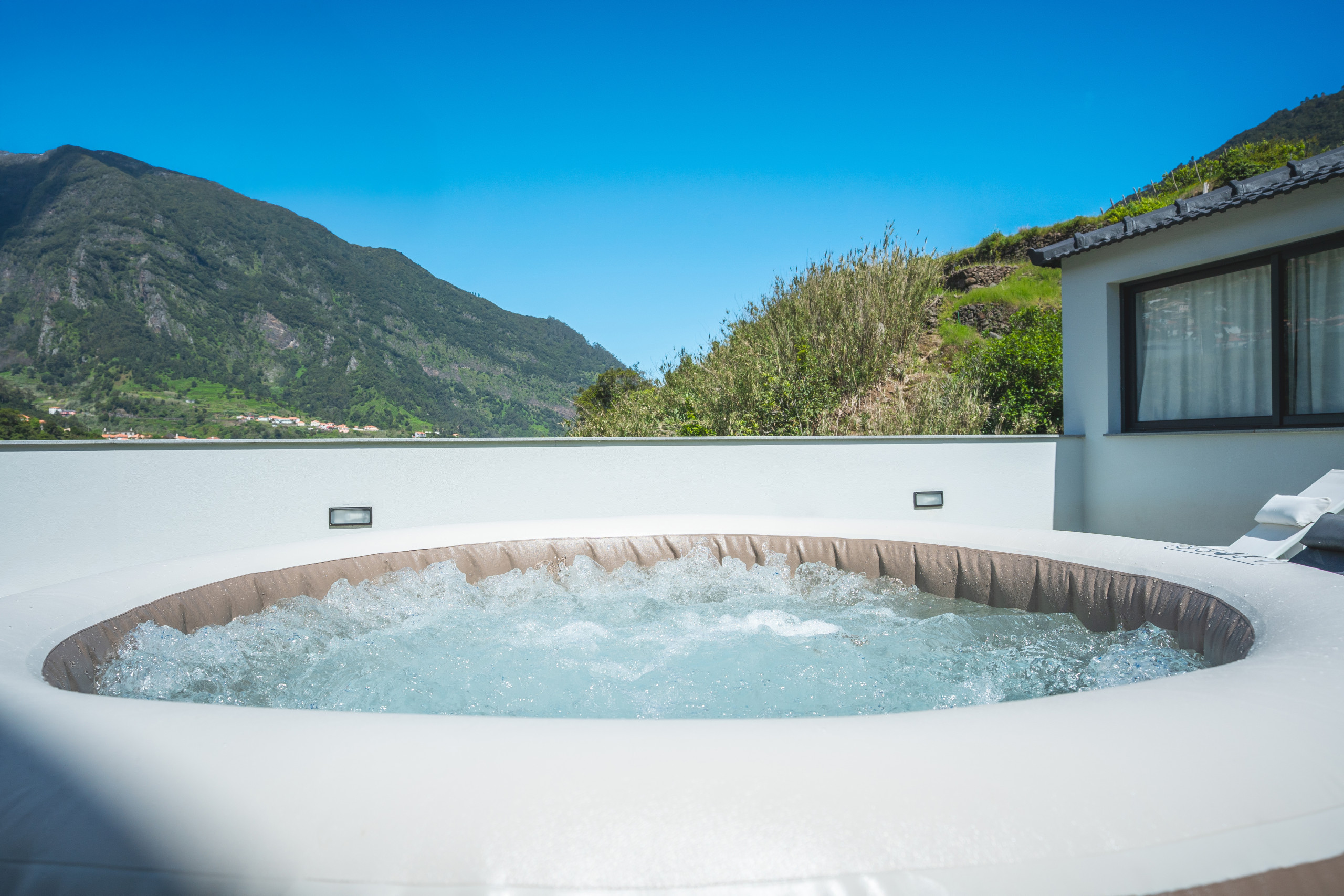 Step outside to enjoy the private Jacuzzi area with sunbeds, ideal for relaxing in the sun or under the stars. Outdoor furniture invites you to enjoy meals surrounded by the natural beauty of the area. Parking is available inside the property for added convenience.