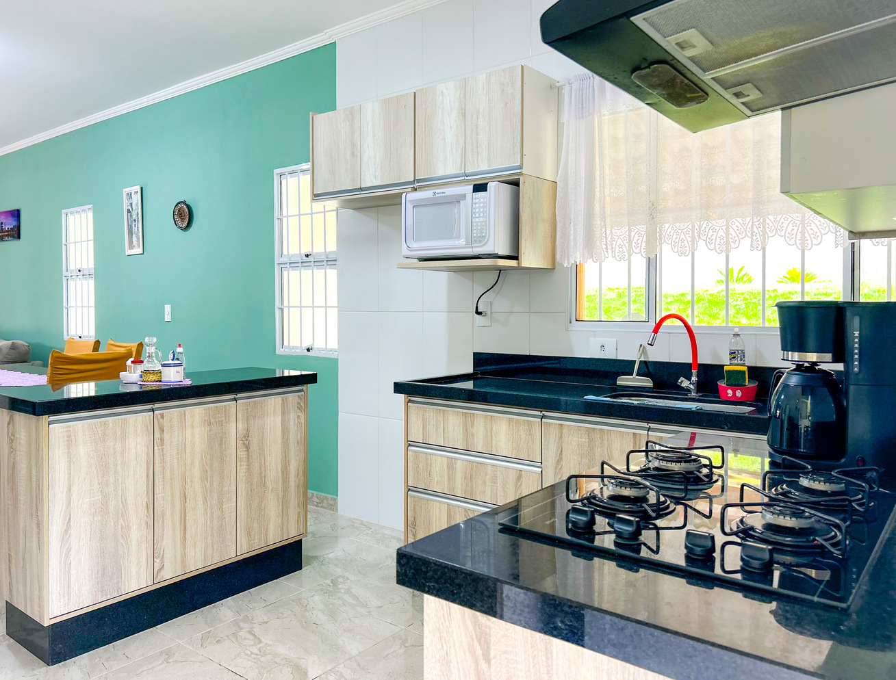 In the gas independent kitchen, refrigerator, microwave, oven, dishes/cutlery, kitchen utensils, coffee machine, juicer and hob are provided.