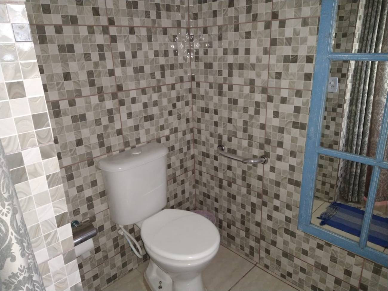 - The bathroom is adapted with a lowered bar and sink and with a mirror