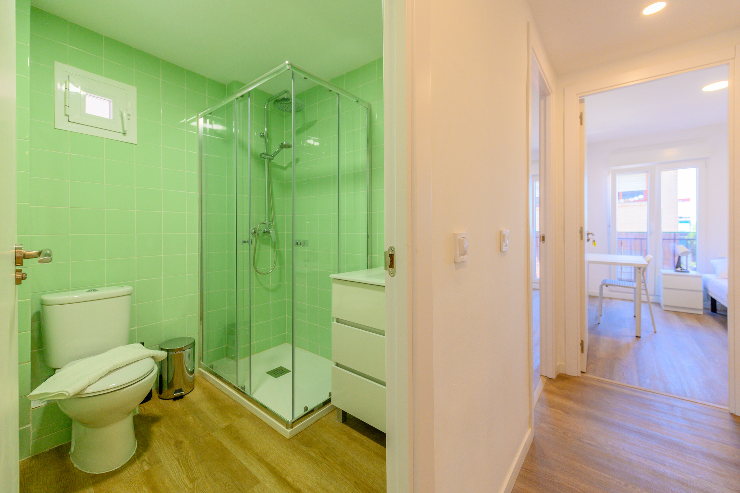 In all the common areas, the accommodation compares to the bathroom with other three accommodations. The bath is equipped with the necessary amenities for efficient daily hygiene. The kitchen, also in the same compartment, is equipped with electrical appliances and utensils necessary to prepare your daily meals. It is a functional and well-organized space, ideal for conviving with other residents and sharing culinary experiences.