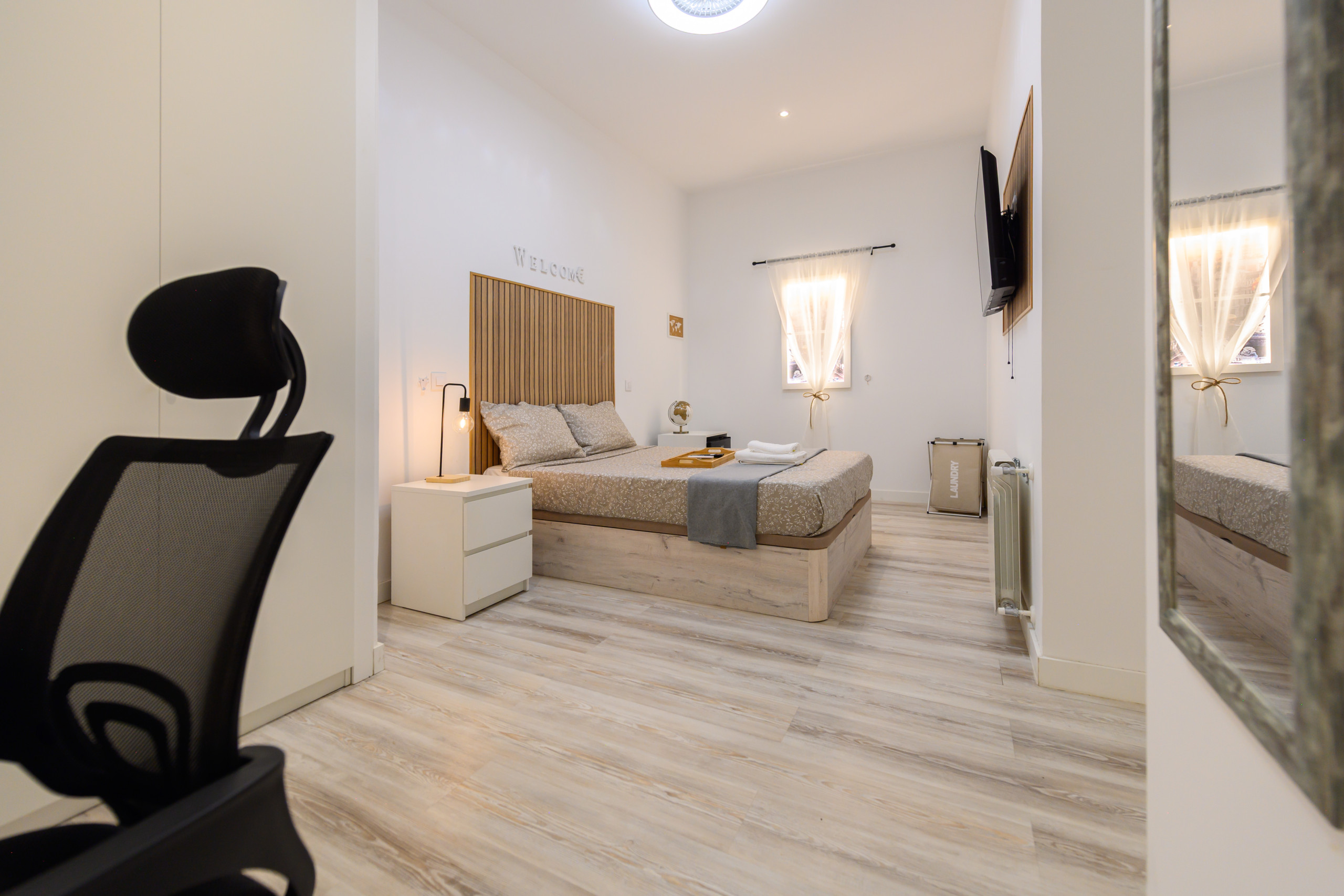Room 8 - Rome: Charming room. It has all the amenities from a bed with a premium mattress, bed base with great storage, desk + chair, to smart TV, air conditioning, safe, iron+board, wireless charger, smart lock, 2 sets of towels and sheets.