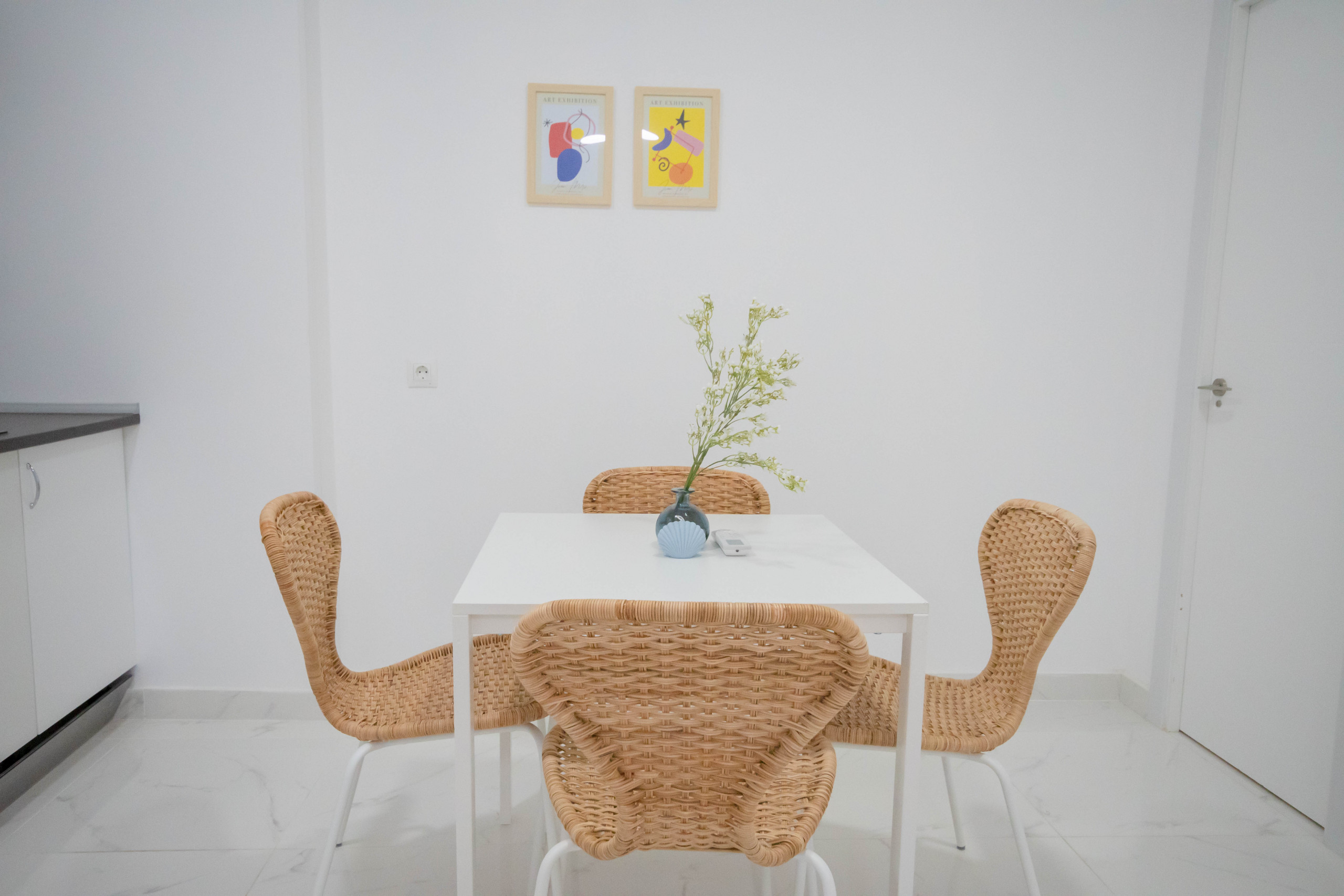 The apartment has been thought from its design to recreate representative icons of the Center of Madrid, in its furniture and decoration, we hide links of modern and classic architecture that you can enjoy when visiting the center of Madrid, the game of colors of its chairs, tables and decoration want to represent the nightlife of the Gran Vía in Madrid for this reason if you are looking for an apartment with character, look no further than this studio is the perfect choice!