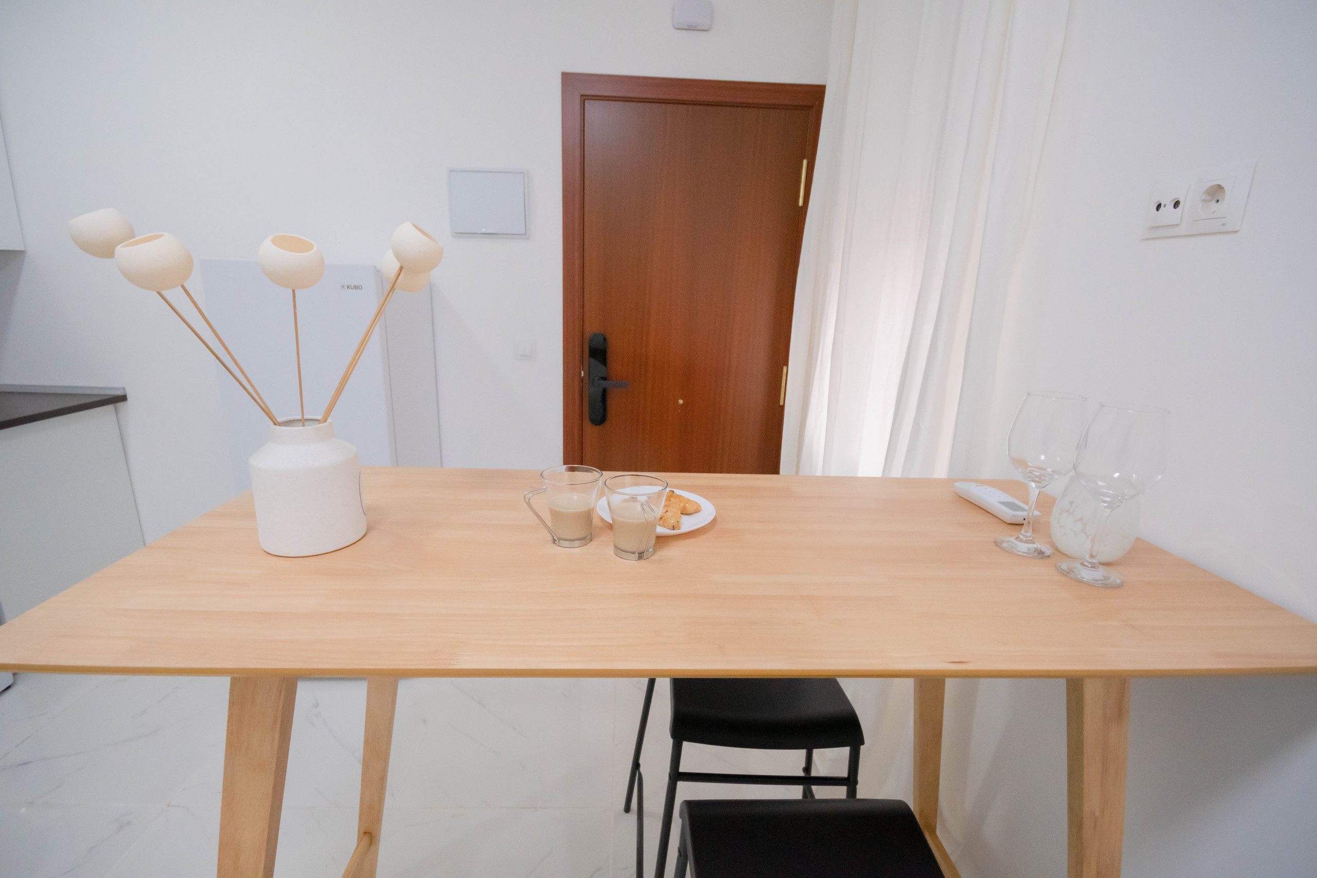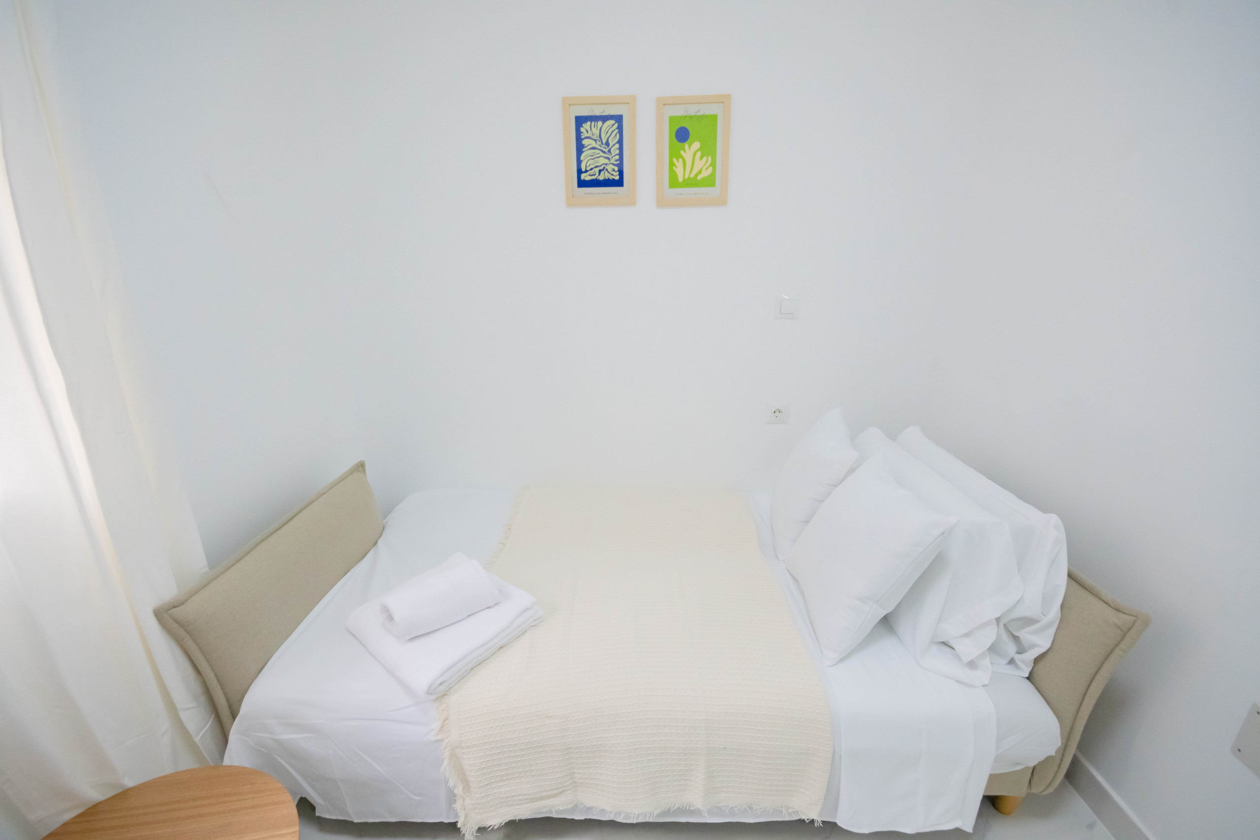 The apartment is designed to recreate an emblematic area of Madrid such as Plaza 2 de Mayo in the Malasaña neighborhood, the wicker chairs, the decoration in beige and white tones evoke the elegance and details of the exposed brick streets of this neighborhood, but we have also wanted to give it a touch of green colors in the interior patio, recalling the joy and hustle and bustle that this emblematic neighborhood has. In short, in this apartment you will find a series of that evoke the feeling of a typical neighborhood in Madrid such as ¨Malasaña ¨, for this reason if you are looking for an apartment with character, look no further than this studio is the perfect choice!