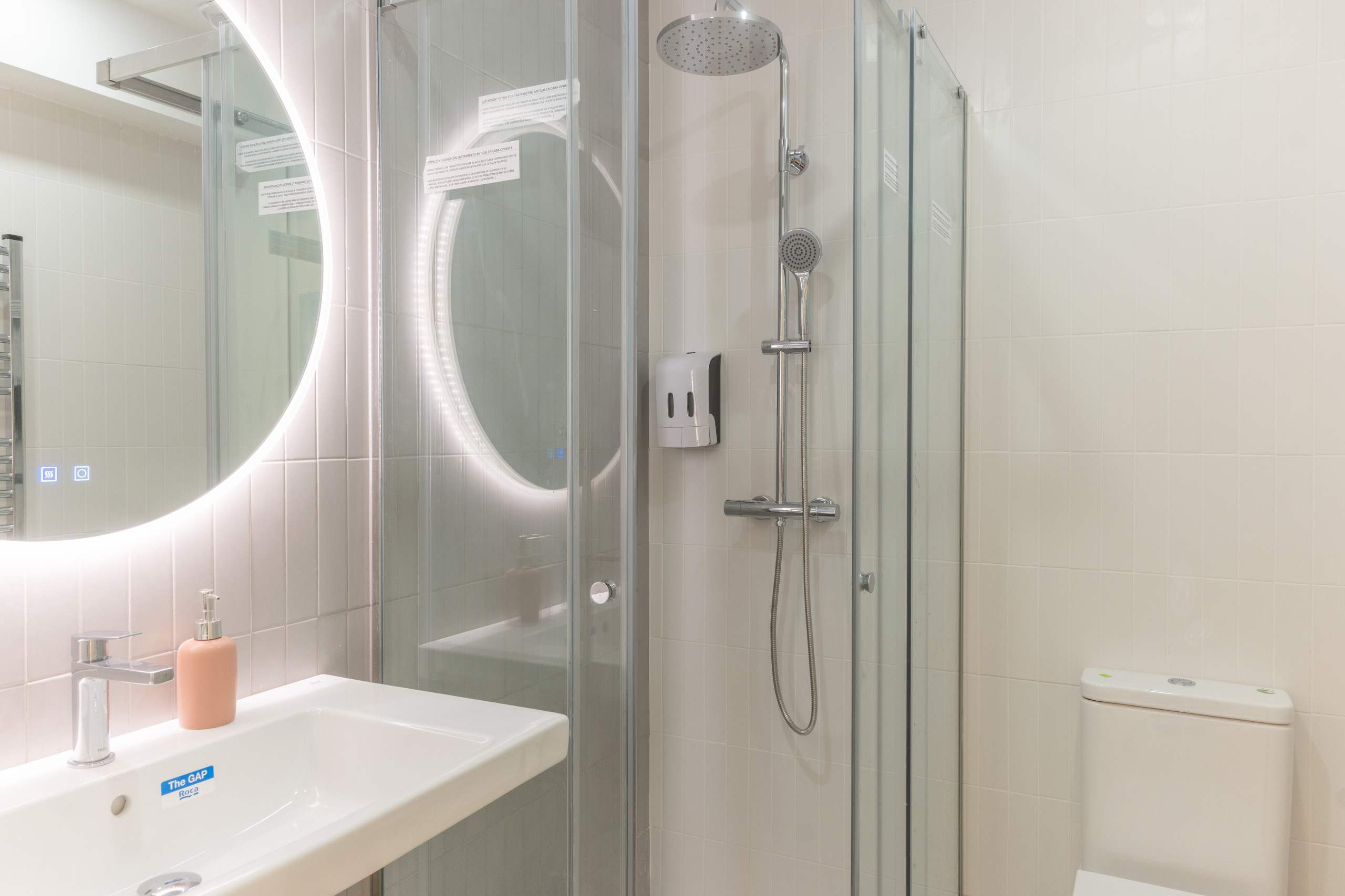 The bathroom, with a modern style, stands out for its spacious shower tray, offering a functional and comfortable space for your daily routine. The renovation has paid special attention to details, combining current design elements with touches that evoke the calm and natural charm of the Sabatini Gardens, creating a welcoming and harmonious environment.