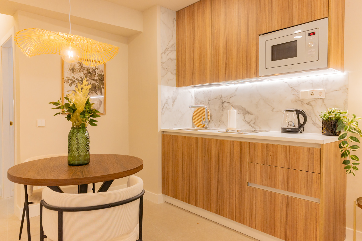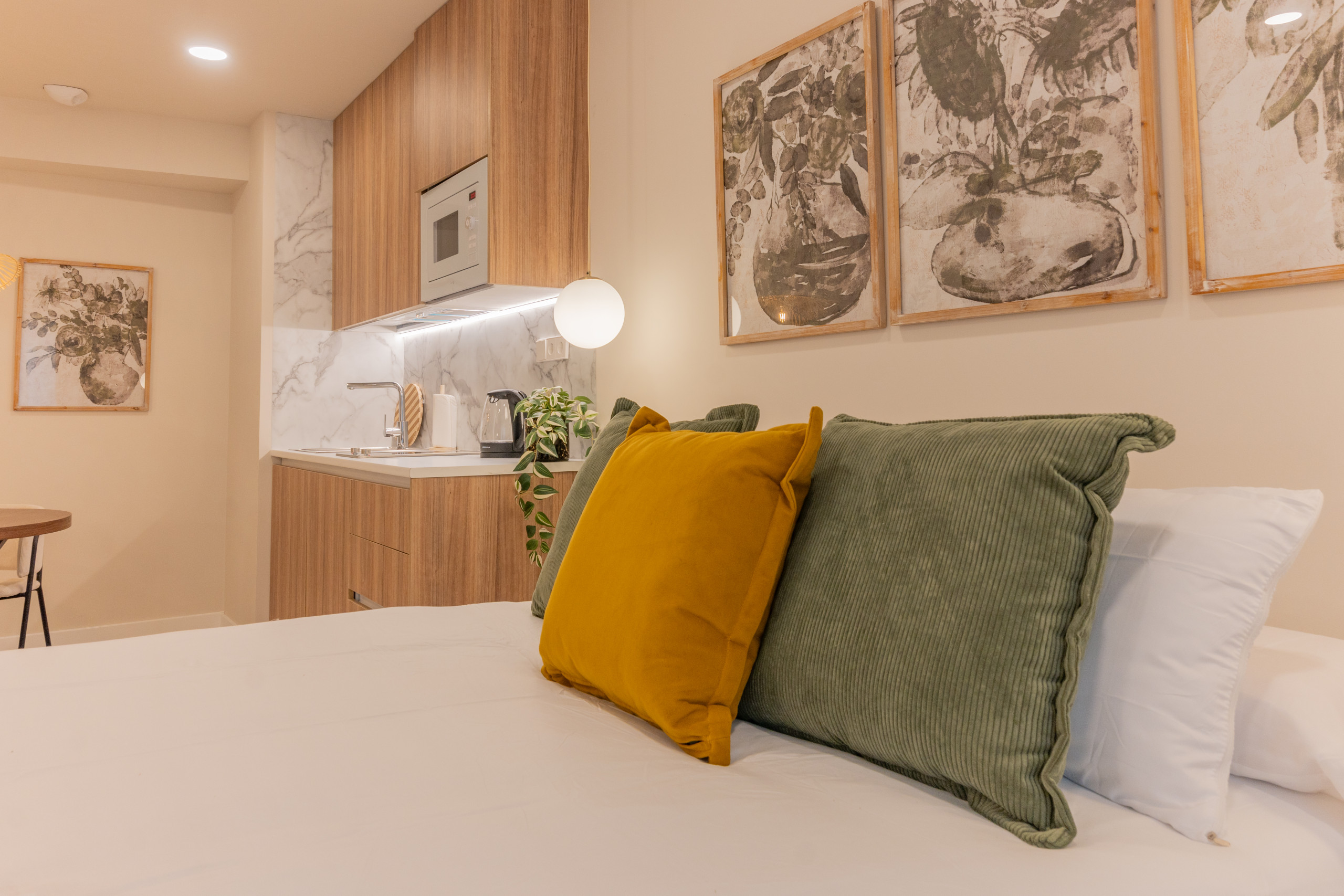 Welcome to Sabatini Studio, a unique space where comfort, design, and inspiration come together to create an unforgettable experience. This charming studio has been recently renovated and carefully decorated by Espacio Vivo Interiorismo, taking inspiration from the serenity and elegance of the Sabatini Gardens in Madrid.