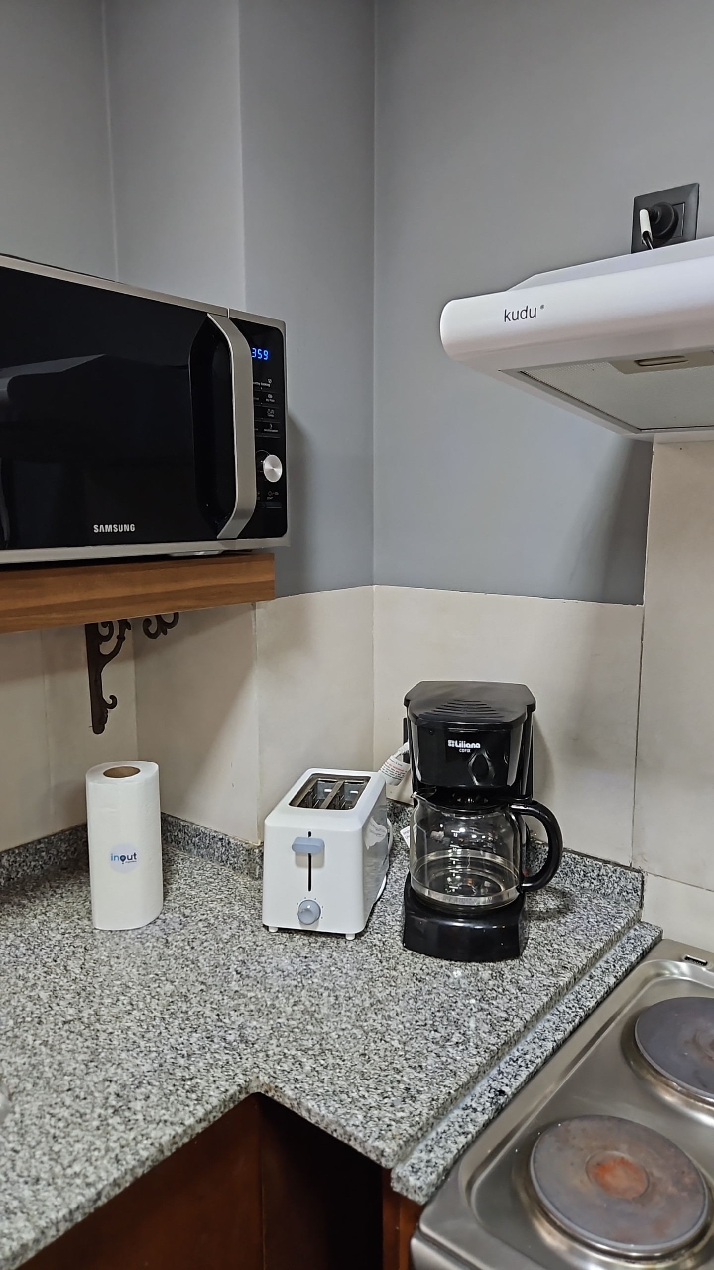 The apartment is located in the city center, just 5 blocks from the civic center, and has two box-spring beds with pull-out beds underneath, a fully equipped kitchen with: electric oven, electric kettle, refrigerator, microwave, and coffee maker, everything you need to cook as if you were at home.