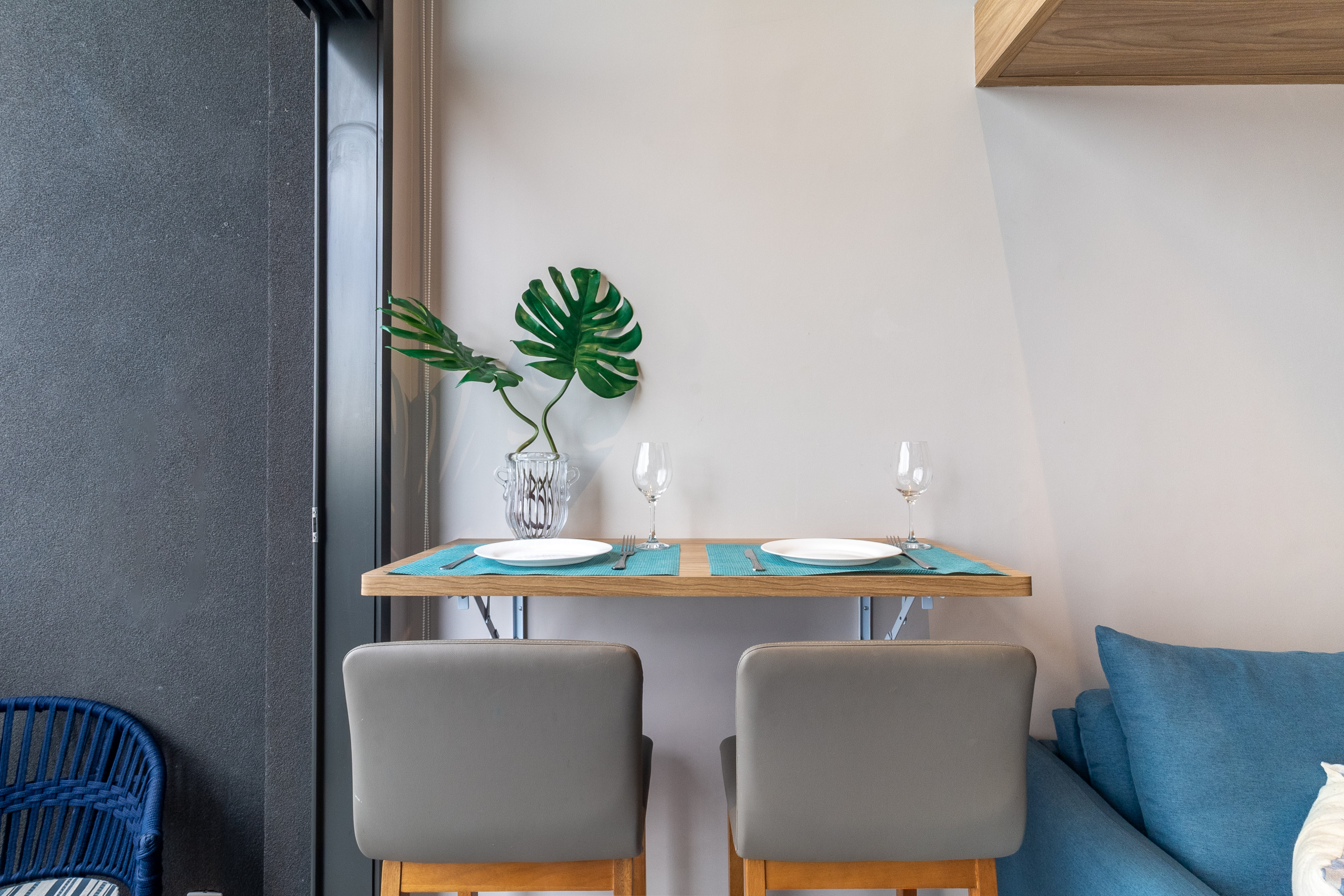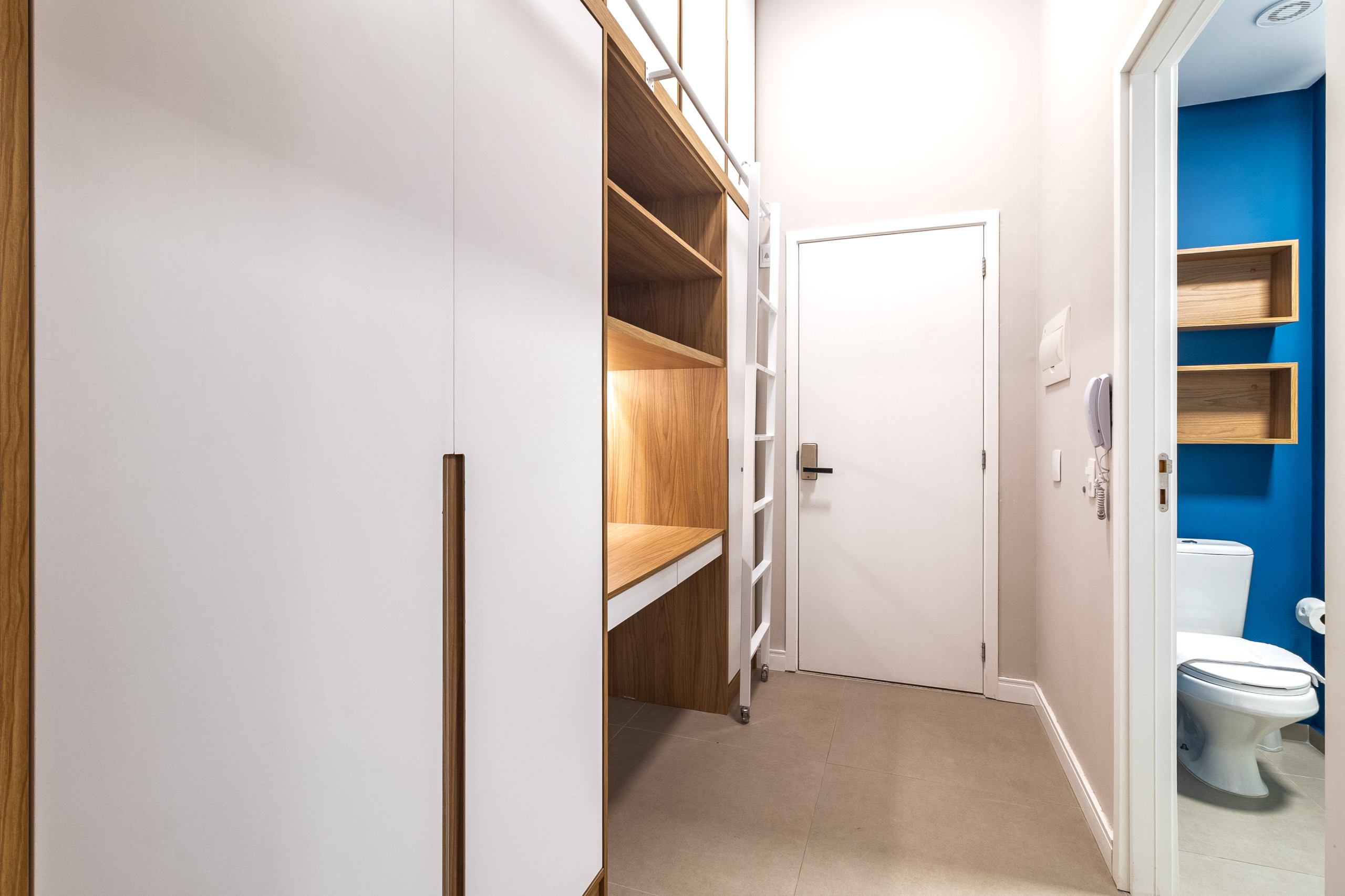 The space offers a modern and functional environment, with a bedroom equipped with a comfortable double bed, ensuring perfect rest after a busy day in the city. The apartment has air conditioning to maintain the ideal temperature at all times.