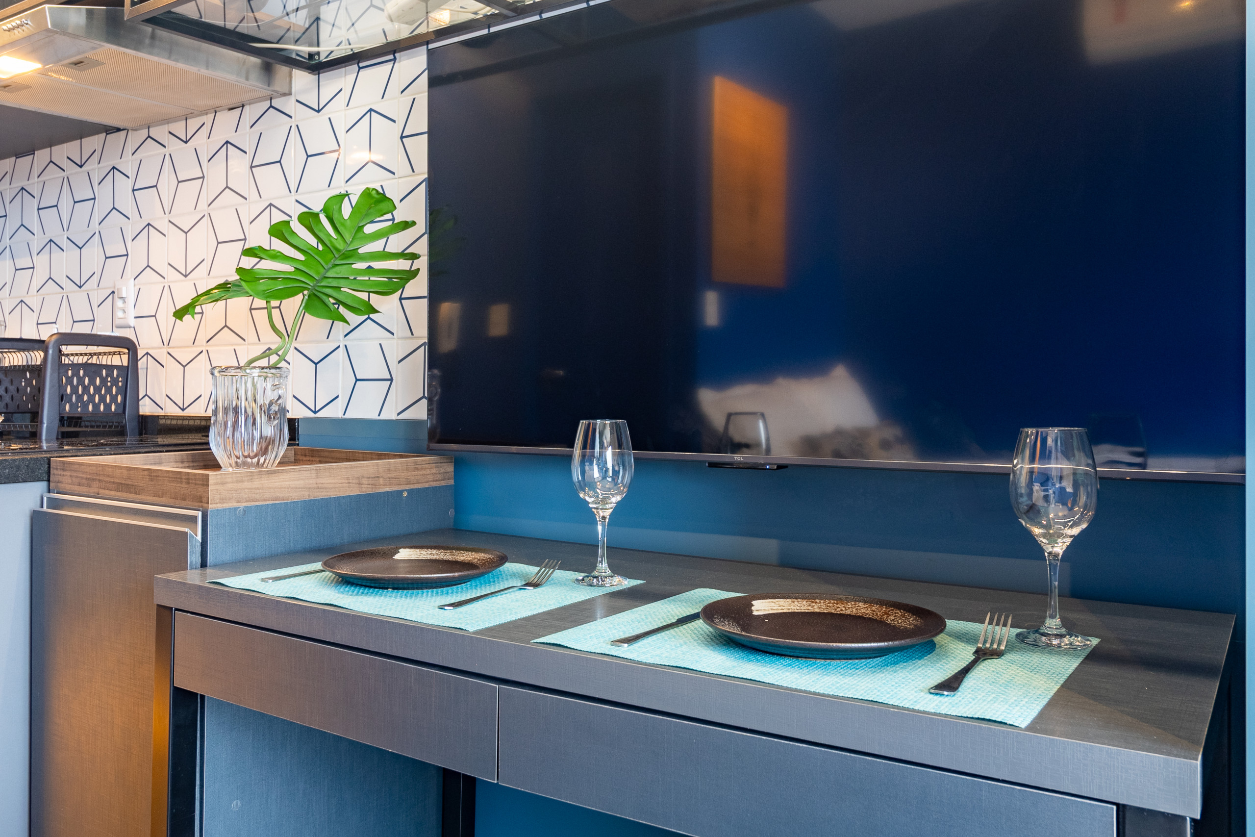 Discover your urban retreat in this modern and carefully designed studio, with a colour palette that blends shades of blue, grey and wood, creating a vibrant and welcoming environment. The space comfortably accommodates up to 3 people.