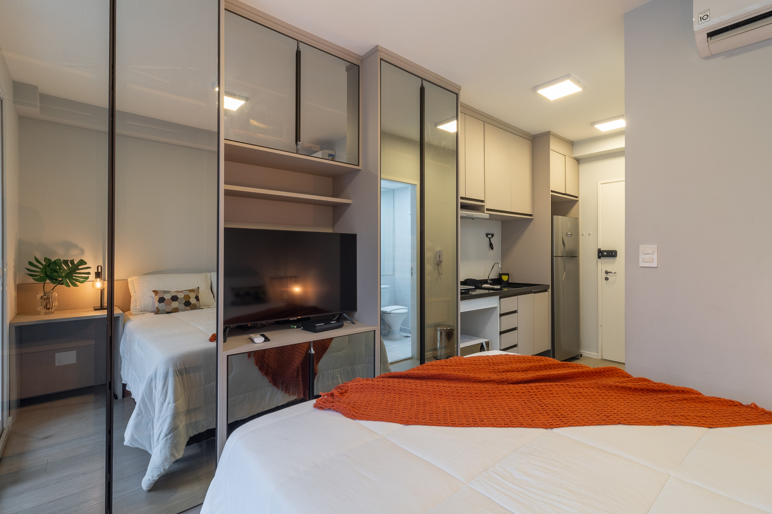 Discover the comfort and modernity of this cosy studio apartment in the heart of São Paulo, designed to be your urban refuge. Ideal for up to 2 people, the space is practical and well-located.