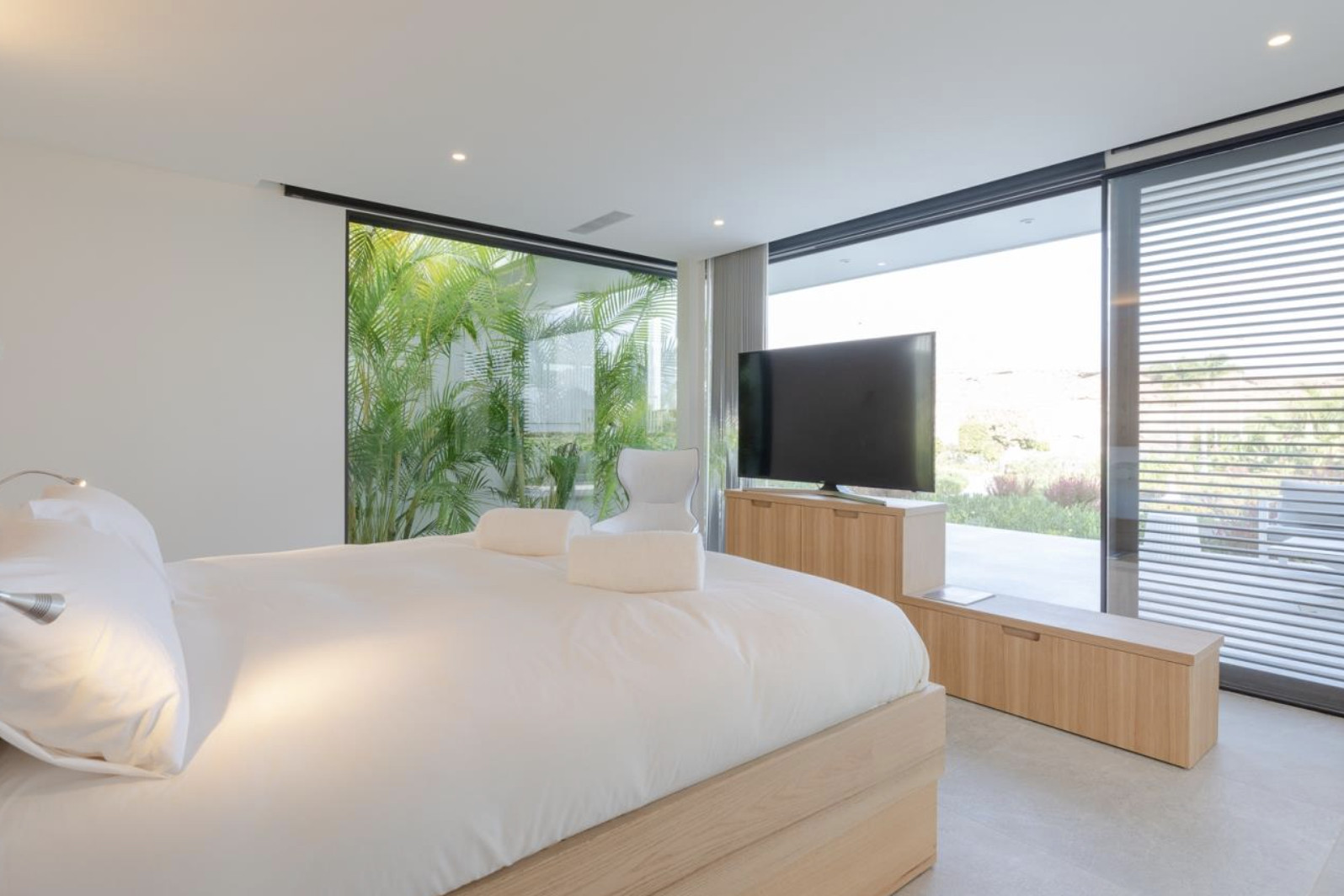 On the ground floor are the four en-suite bedrooms, each with direct access to its own private terrace. Designed for rest and disconnection, these spaces offer a carefully selected range of textiles, spacious walk-in wardrobes and bathrooms where every detail has been considered to elevate the comfort experience.