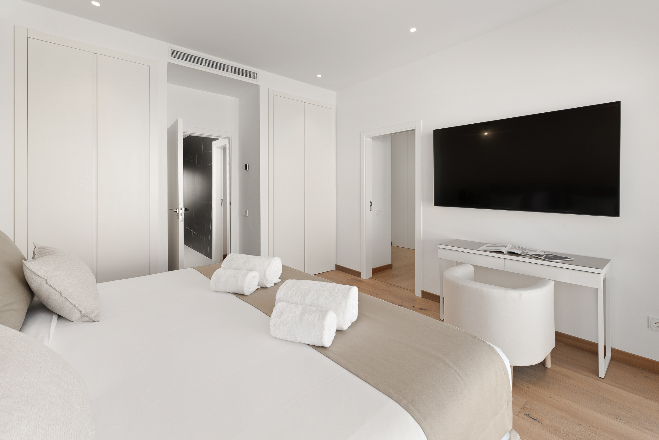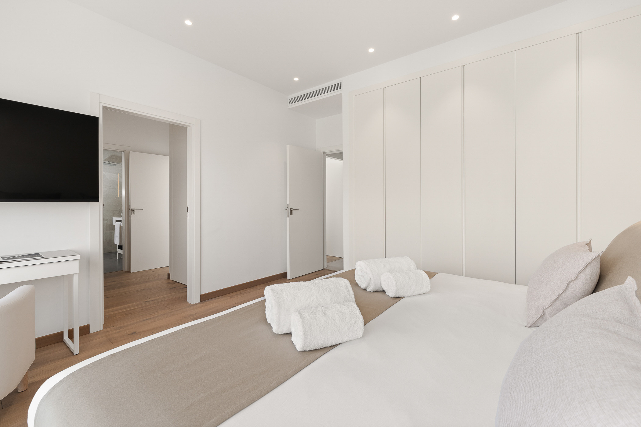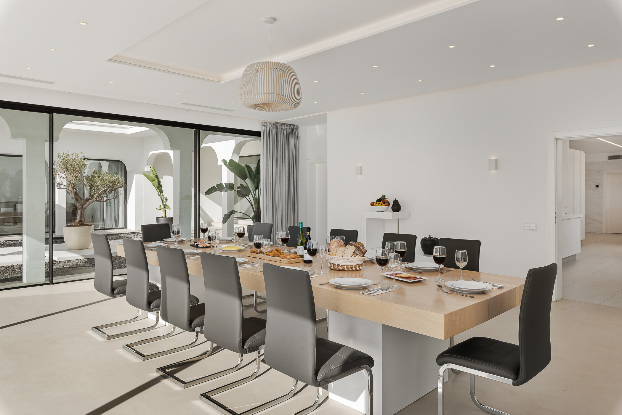 With a total of seven elegantly decorated rooms, the villa can comfortably accommodate large groups, without compromising privacy and comfort. Additionally, it features two independent apartments: one with two double bedrooms and another with a double bedroom, perfect for offering greater independence to certain group members or service staff.