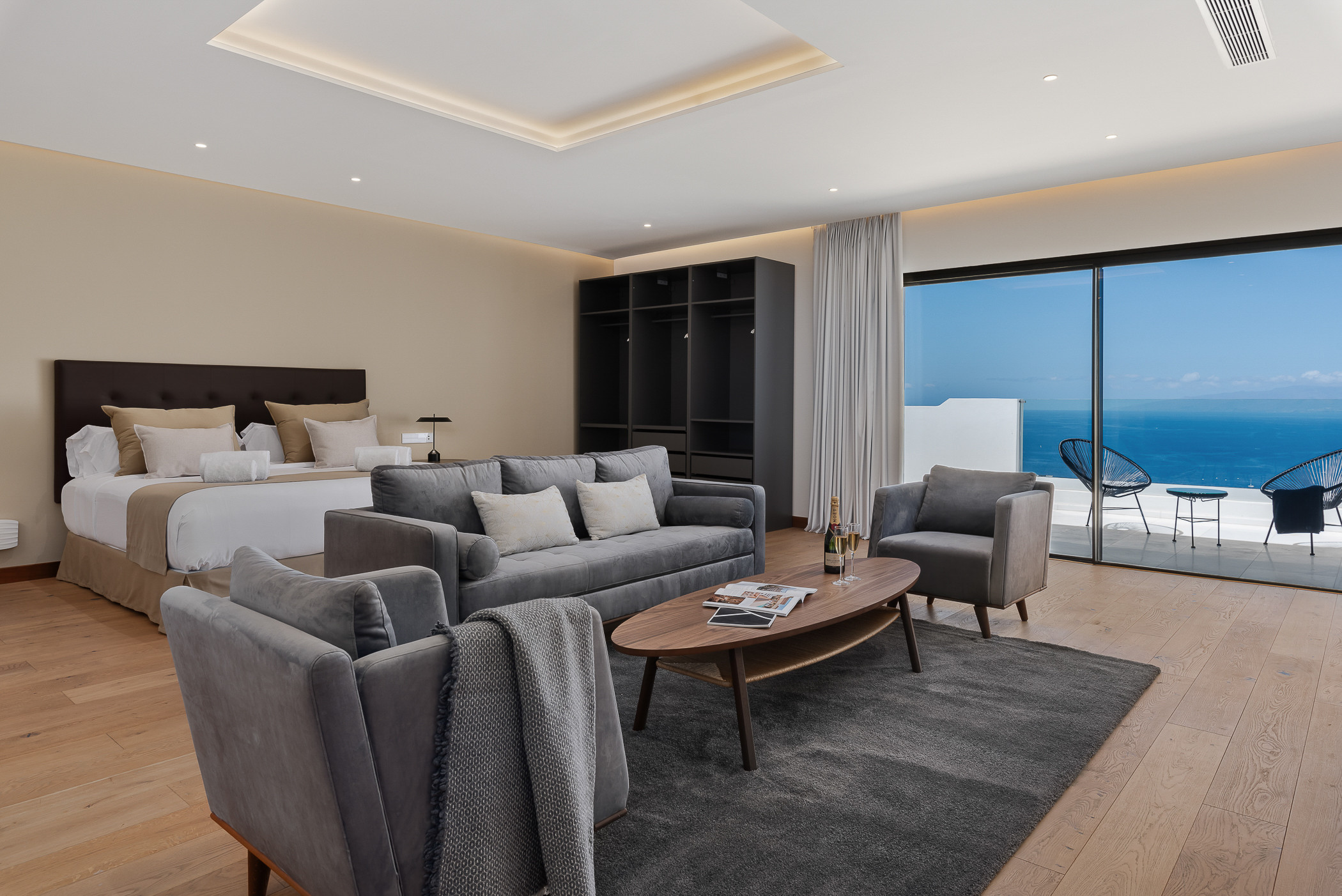 A bright and spacious living room crowns the villa, offering the ideal place to relax while contemplating the immensity of the ocean and the sunsets over La Gomera, which seem to have come straight from a postcard.