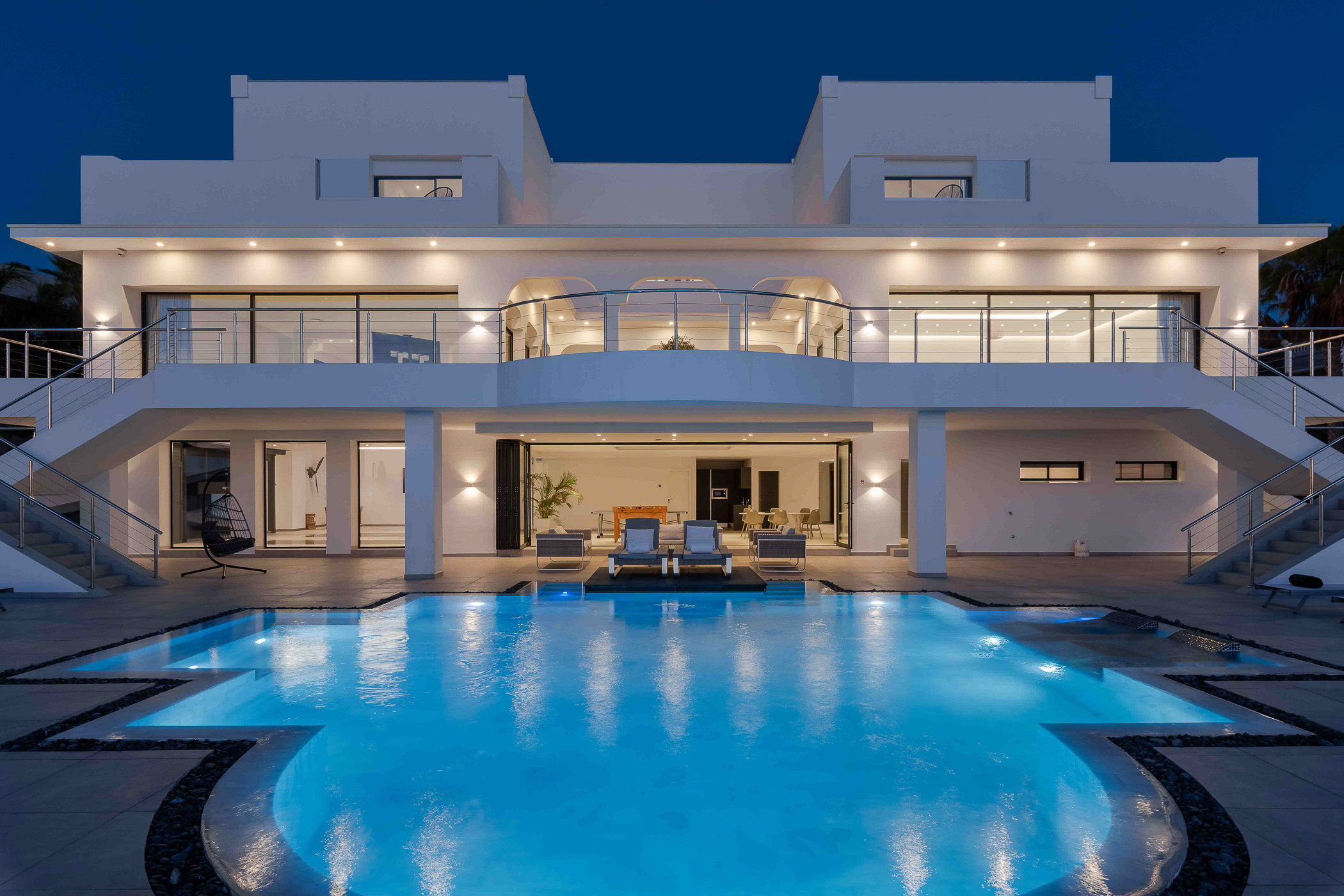 Leisure continues with a ping pong table and a football table, designed to create fun moments among friends and family. And for movie nights, the villa offers a private room that transforms any projection into an immersive cinematic experience.