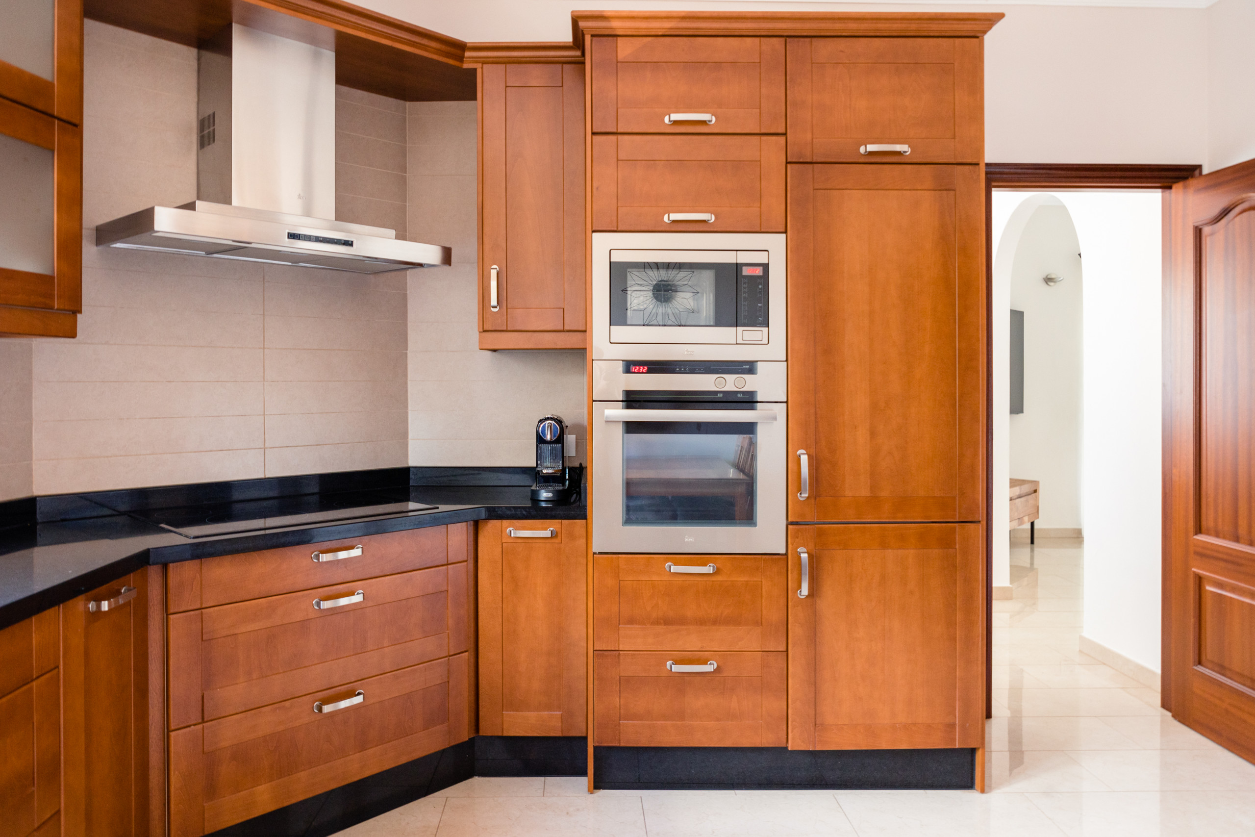 Enjoy first-class amenities such as air conditioning, WiFi, TV with channels in Spanish, English and German, and a fully equipped kitchen with state-of-the-art appliances. The separate kitchen includes a refrigerator, washing machine, dishwasher, oven, microwave, coffee maker, toaster and much more.